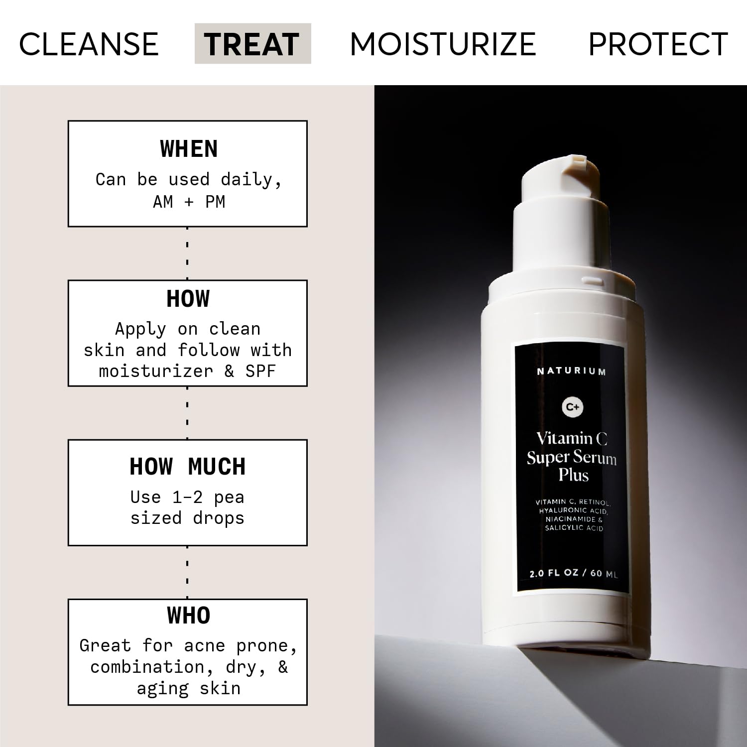 Naturium Vitamin C Super Serum Plus Jumbo, Smoothing Face Care, plus Retinol, Hyaluronic Acid, Niacinamide & Salicylic Acid, 2 oz