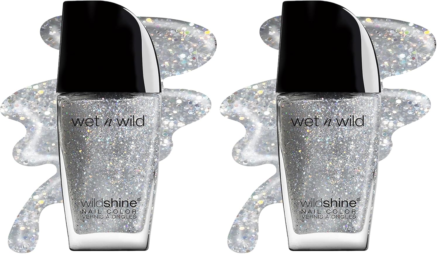 wet n wild Wild Shine Nail Polish, Kaleidoscope, Glitter Top Coat, Nail Color (Pack of 2)