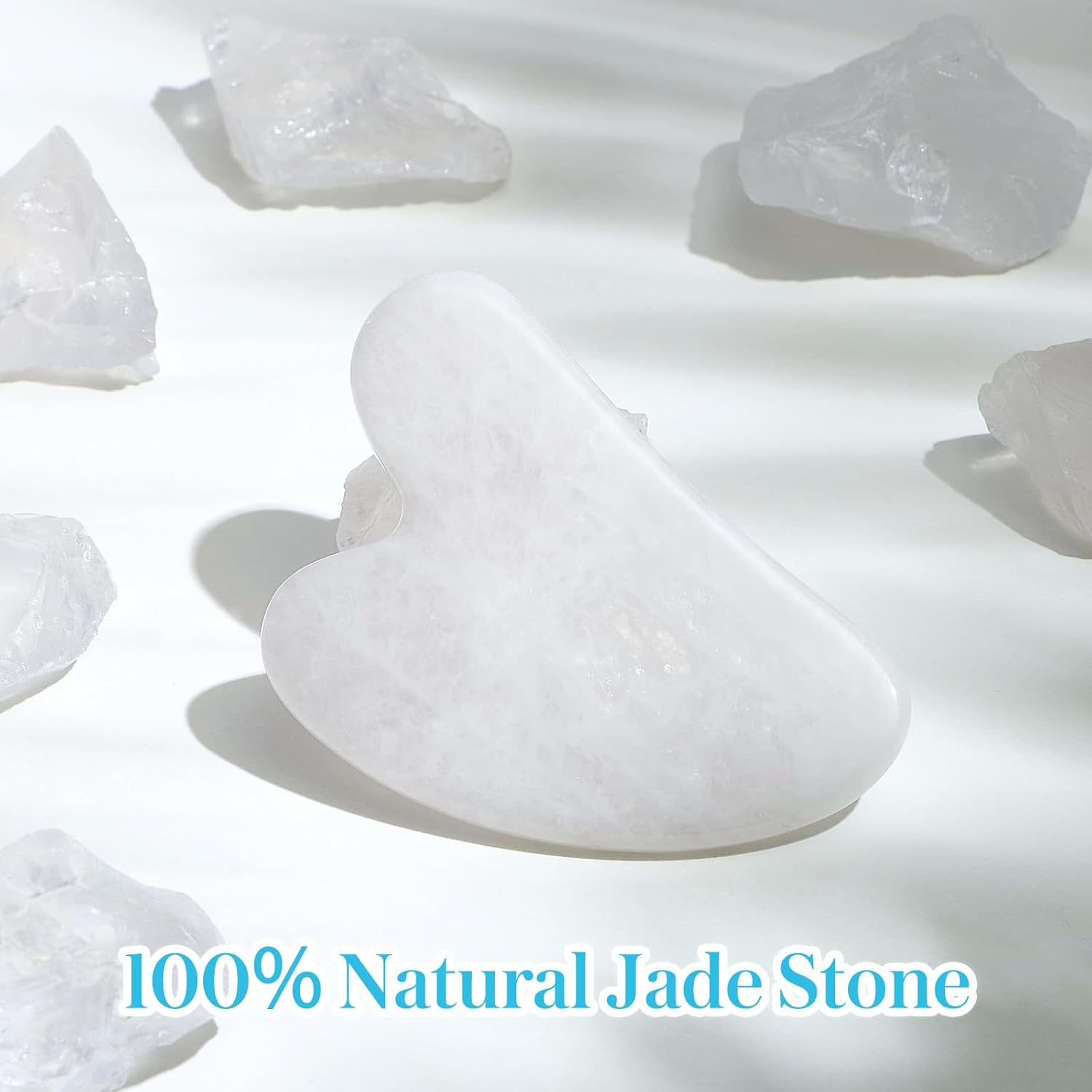 - White Jade Facial Tool: Experience the cooling feeling of jade stone with our facial gua sha tool, designed exclusively for delicate facial contours. This gua sha jade glides smoothly with serums to temporarily reduce morning puffiness and enhance skincare absorption through gentle lymphatic massage