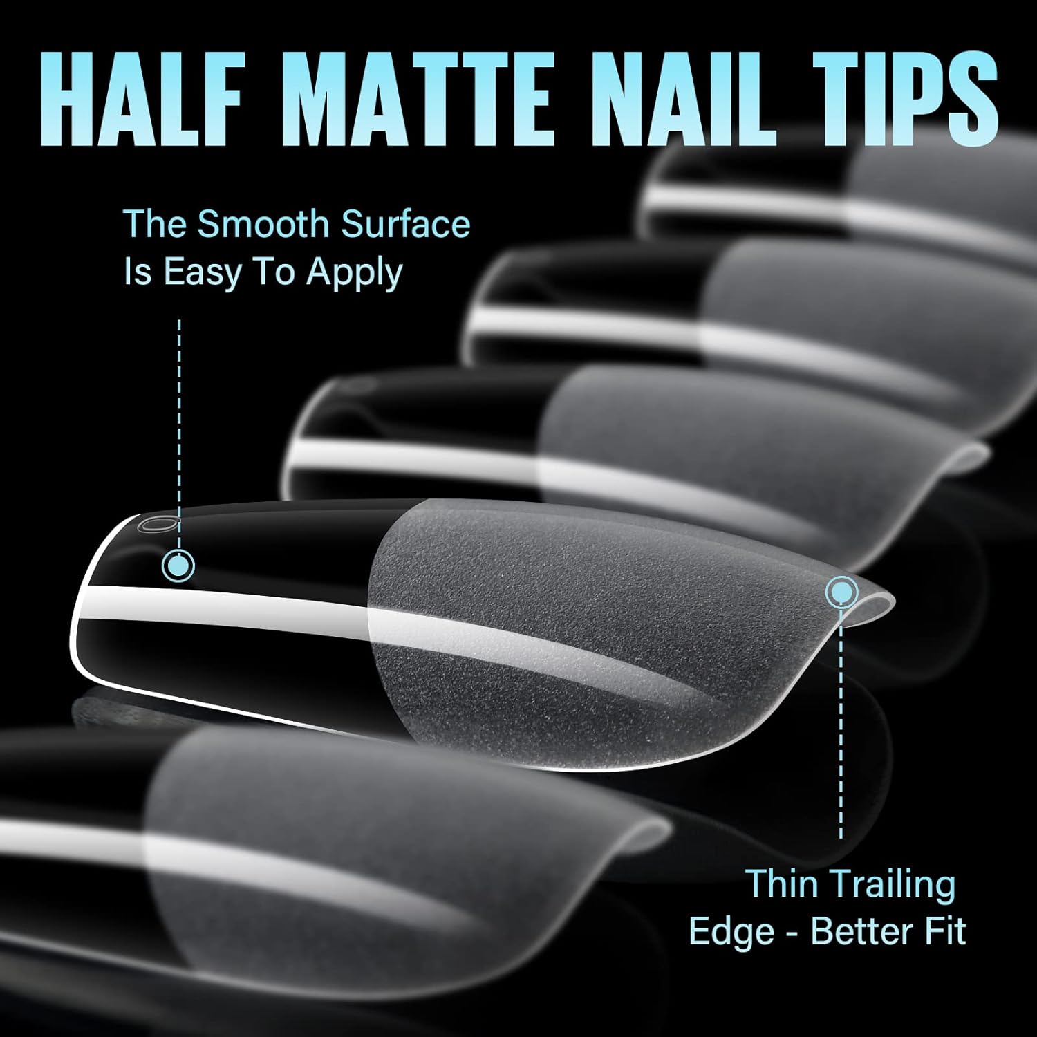 - Medium Coffin Tips with a Traceless Finish: Our gel nail tips are exceptionally flexible, leaving no trace, even when bent. Their clarity and brightness make it easier to shape, trim, and paint these false nails, allowing you to achieve your dream nail shape. Experience the real DIY manicure with our gel tips.