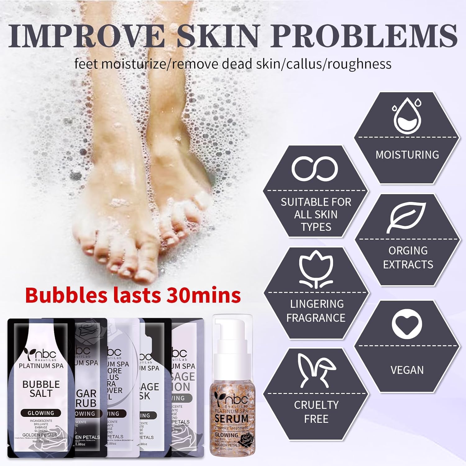- Product Benefits : This foot soak set relieves fatigue, restores smooth skin, and eliminates odor for a soothing spa experience. This foot soak set relieves fatigue, restores smooth skin, and eliminates odor for a soothing spa experience.