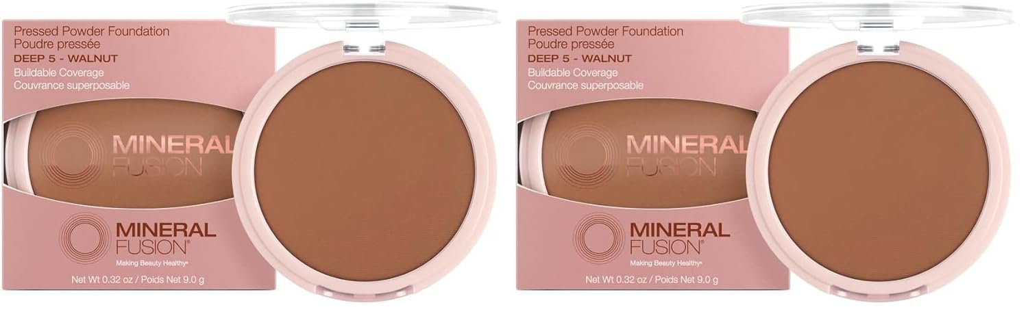 Mineral Fusion Pressed Powder Foundation, Deep 5, 0.32 Ounce (Pack of 2)