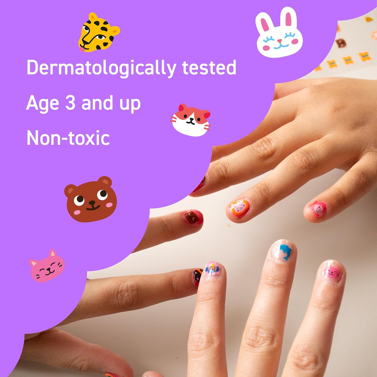 - 🐾 So Many Cute Designs! 200 stickers featuring animals, friends, hearts, and smiles to brighten up little nails every day
