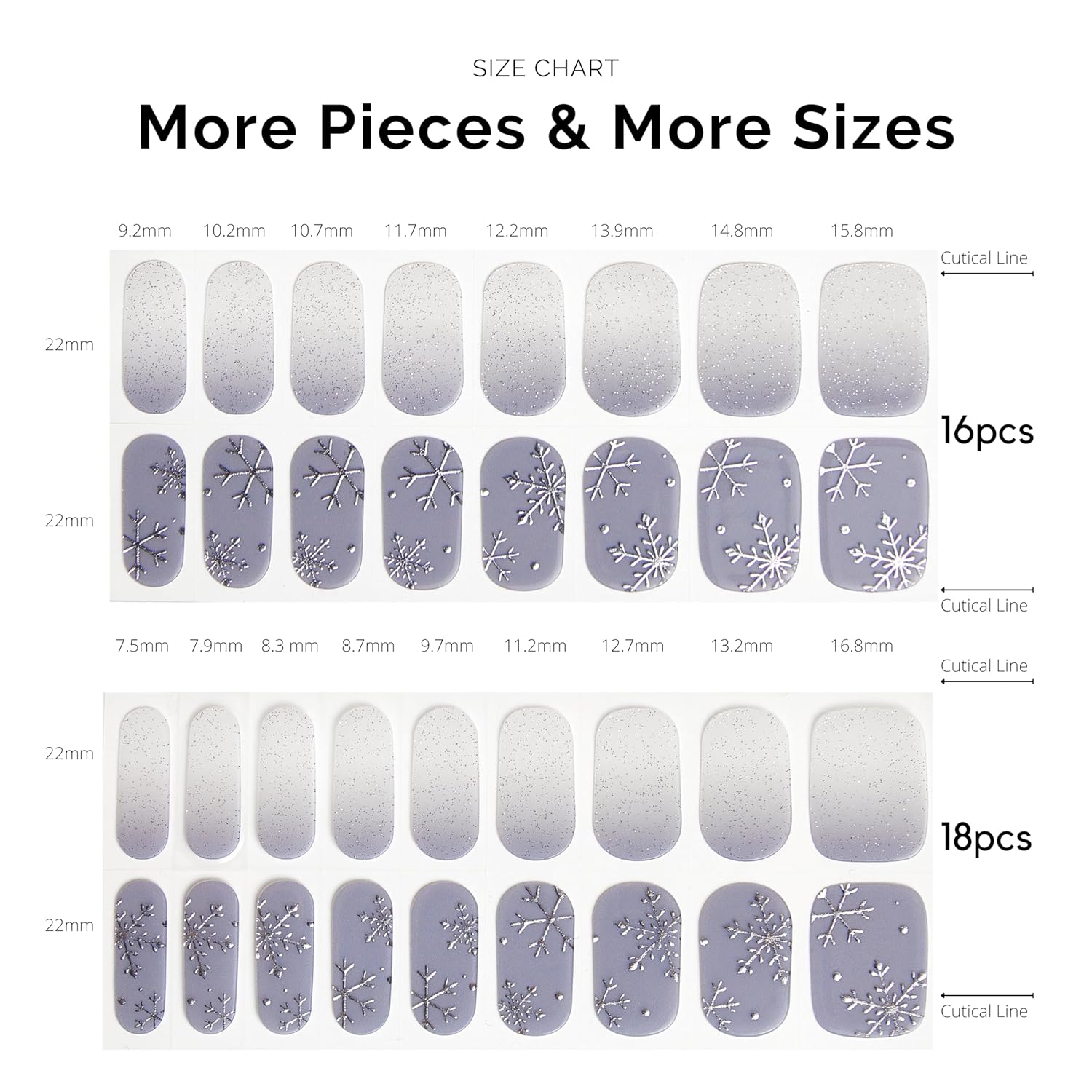 - ❤NAIL DESIGNS FOR ALL: With a diverse range of snowflakes gel nail strips designs and colors, we have something for everyone and every occasion (shopping, dating, friends gathering, wedding, gifting, Christmas or simply at home). From solid color gel nail strips to french tip, flowers design nails, from dazzling glitter to ombre/gradient, you can always find the right style with nailog gel nail strips.