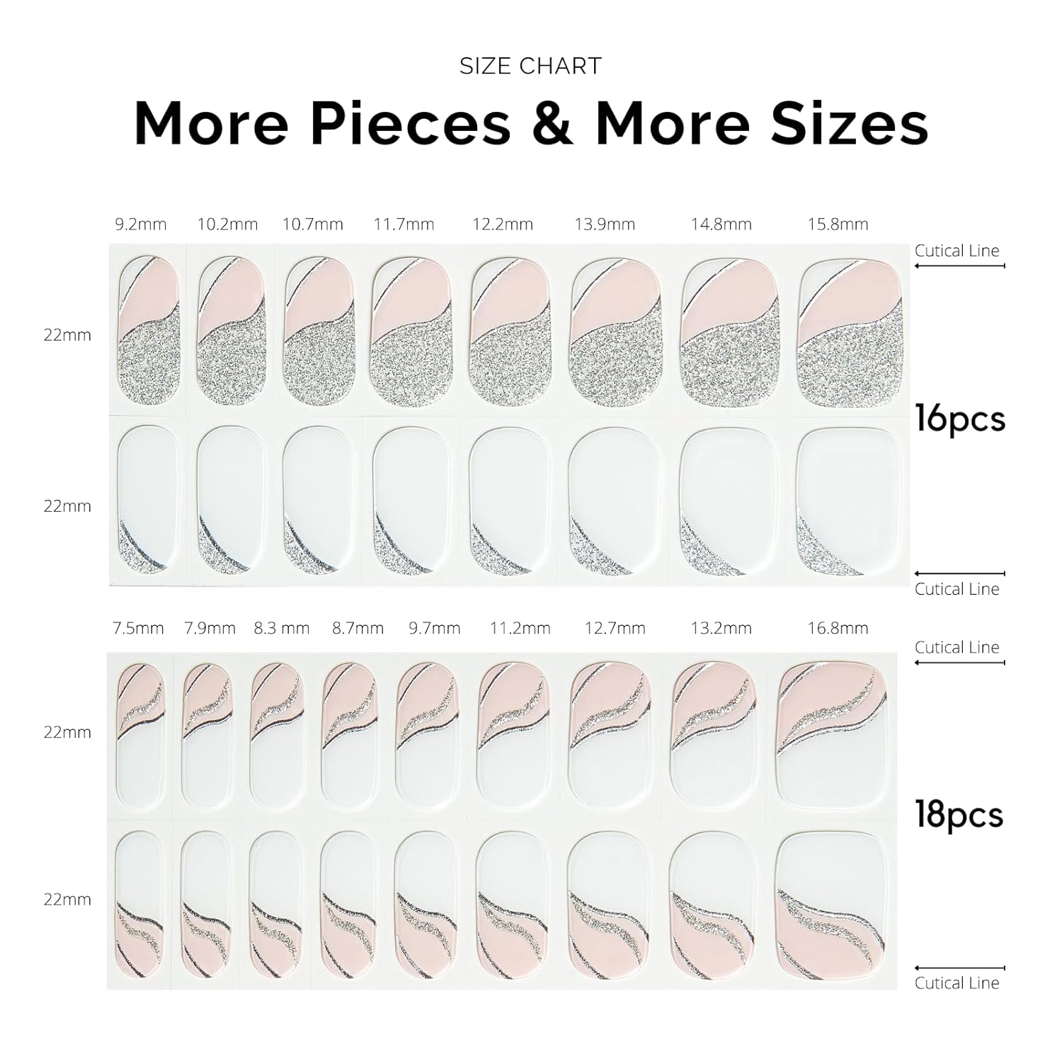 - ă34 PCS NAIL STRIPSăMore Quantity & Sizes than Ever! - With 17 different sizes of our nail art stickers, you can easily find the right size to match your nails. - New curved side line fits even better with your nail shape for seamless adhesion.