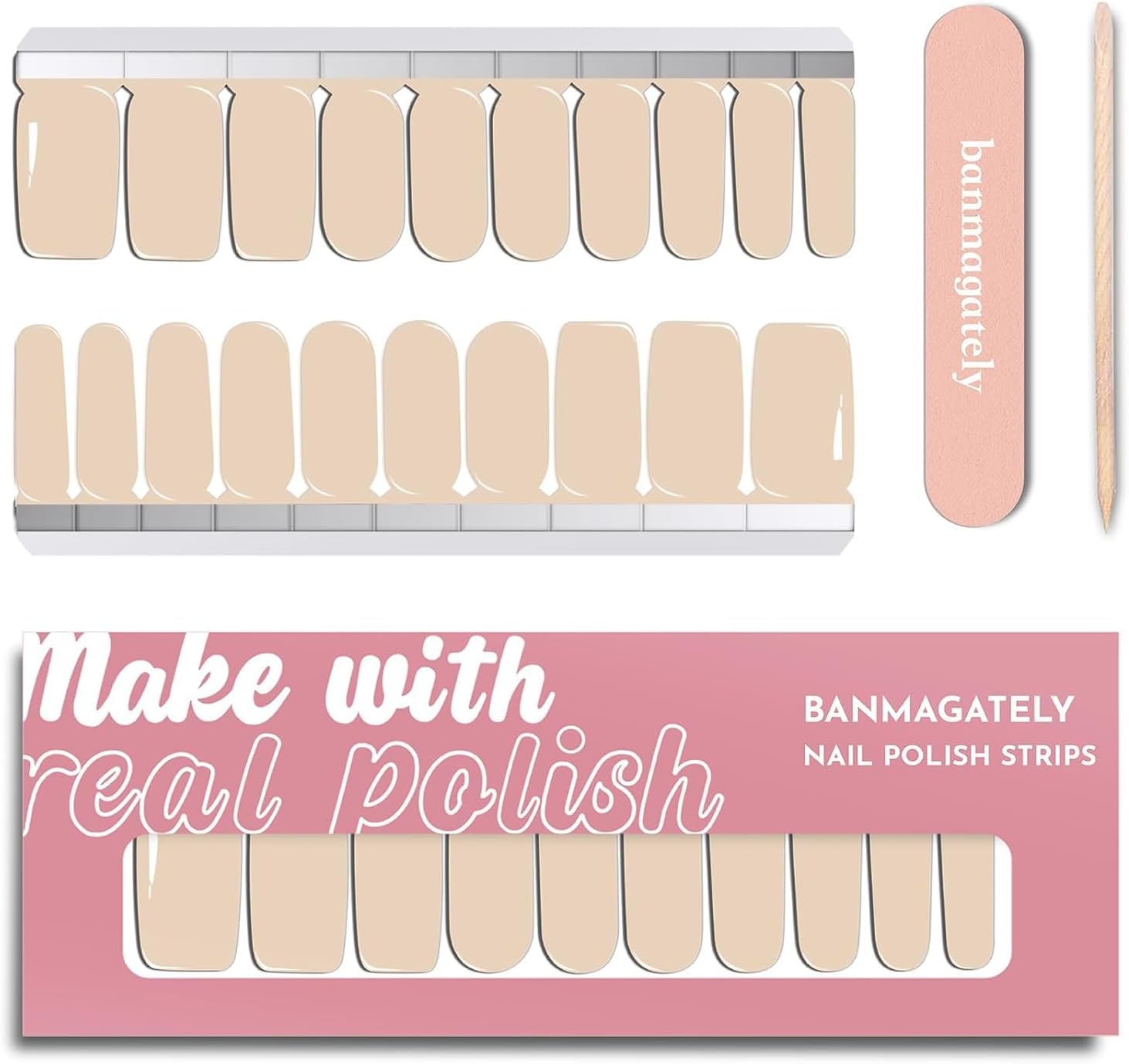 - Package Include: The whole product includes 20 pieces Water resistant Polish Nail Strips , 2 Cleaning Wipes, 1 Wood Stick, 1 Nail File, and 1 instruction manual.