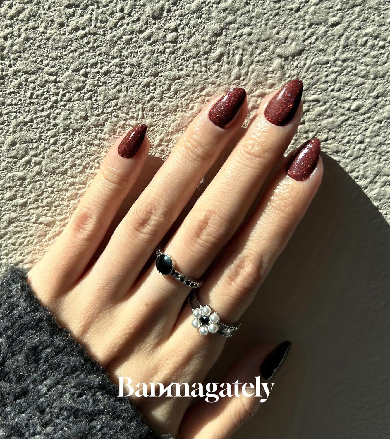 Nail Polish Strips, 20Pcs Salon Quality Gel Nail Stickers, Easy Long Lasting Wraps for Short Nails no UV Light Needed (Glitter Deep Scarlet)