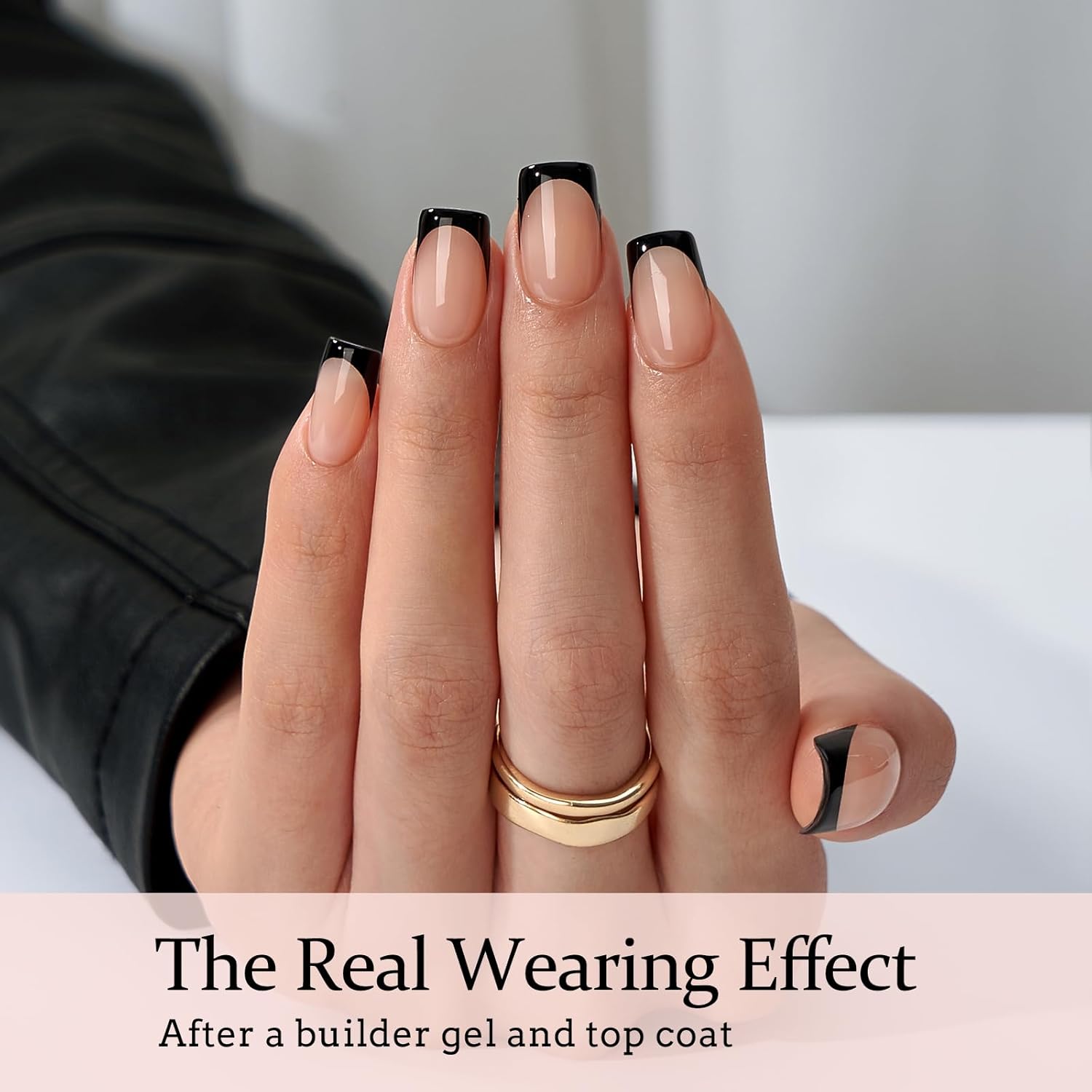 - IDEAL FOR BLACK FRENCH MANICURE: Btartboxnails French Tip Nails Black(top coat required) bring you netural colors and classic designs. Get ready for with one bulider gel and one top coat. Then you can create your unique design in fewer steps