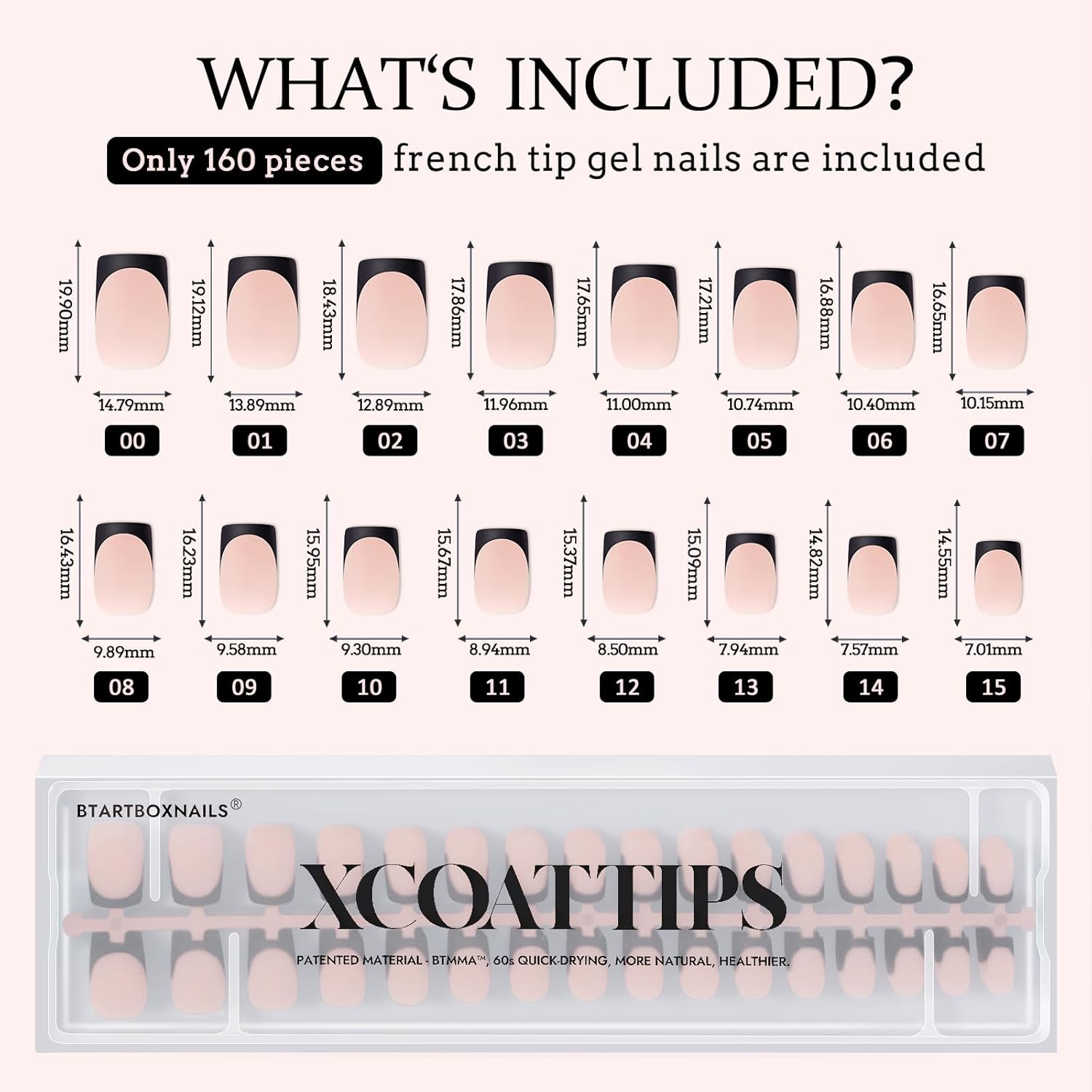 BTArtboxnails Black French Press On Nails - XCOATTIPS French Series Short Square Nails, Soft Gel Nail Tips, French Tips Press On Nails Soak Off Acrylic Fake Nails Glue On Nails