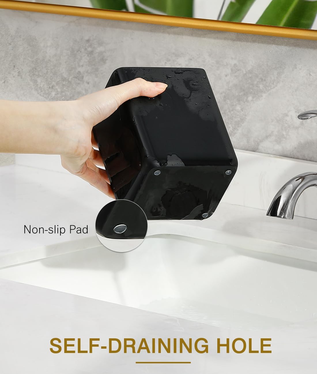 - ใ๐๐๐ฅ๐-๐๐ซ๐๐ข๐ง๐ข๐ง๐ & ๐๐จ๐ง-๐ฌ๐ฅ๐ข๐ฉใThe bathroom toothbrush holder with a self-draining hole keeps the storage area dry and neat, avoiding water accumulation. Non-slip pads keep the toothbrush organizer securely in place and avoid scratching your cherished vanity.
