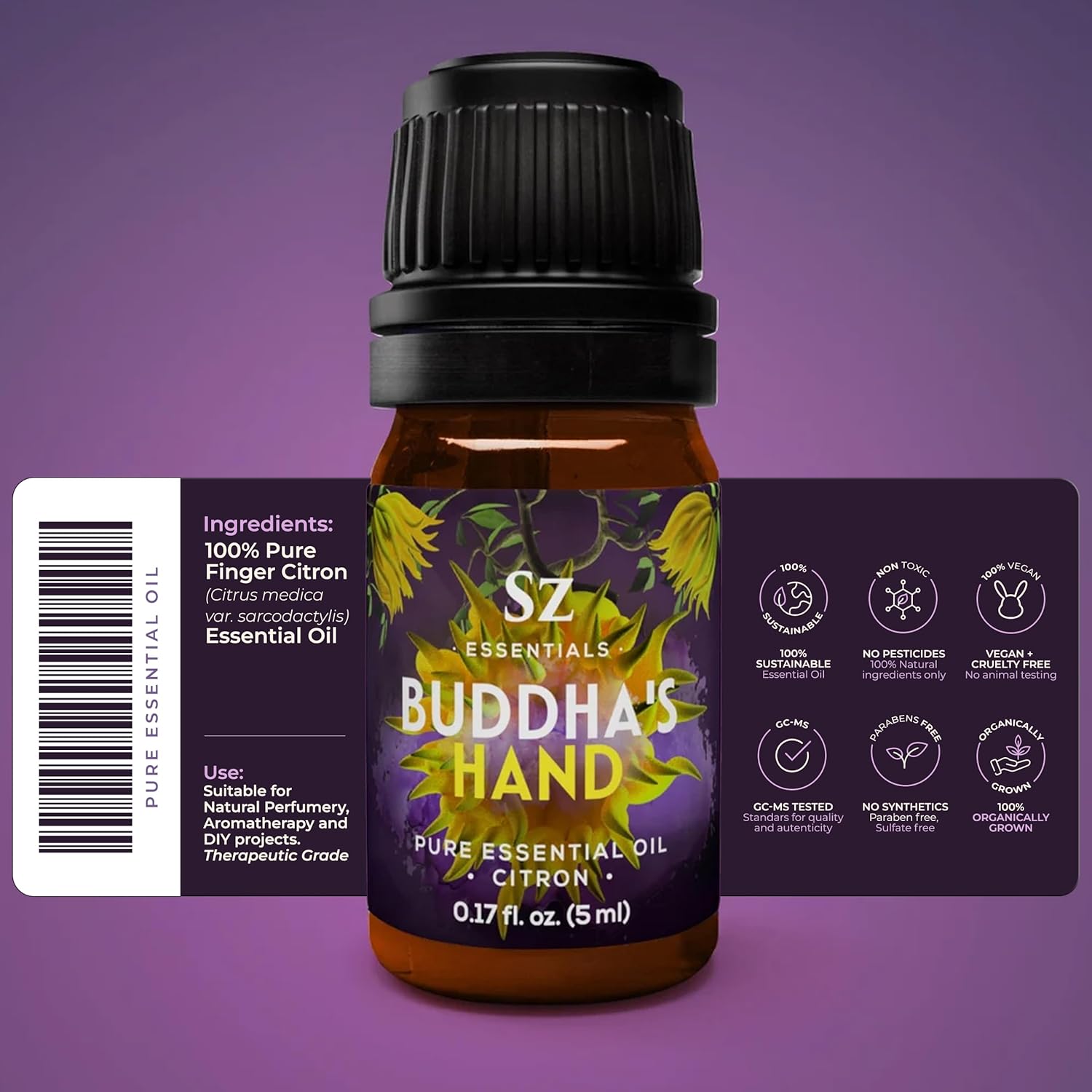 Buddha's Hand Essential Oil, 100% Pure, Extracted from The Most Fragrant Italian Finger Citron - Citrusy & Lemony Scent with Sweet Overtones - Therapeutic Grade & Vegan - 0.17oz (5ml)