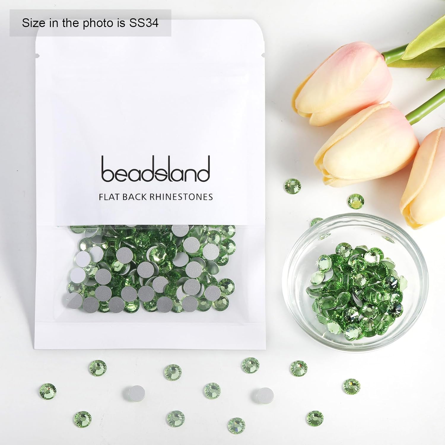 Beadsland 288pcs Flat Back Crystal Rhinestones Round Gems for Nail Art and Craft Glue Fix, Light Green, SS34,7.1-7.3mm