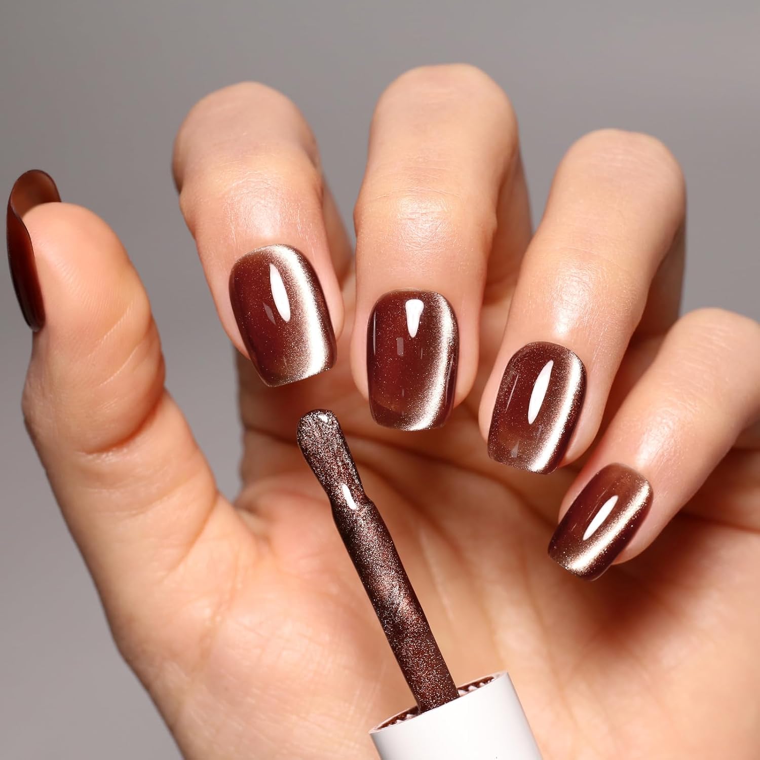 Imtiti Brown Cat Eye Gel Nail Polish, 0.5fl oz Holographic 9D Cat Eyes Glitter Magnetic Gel Polish UV Gel Nail Polish with Magnetic Stick for Nail Salon