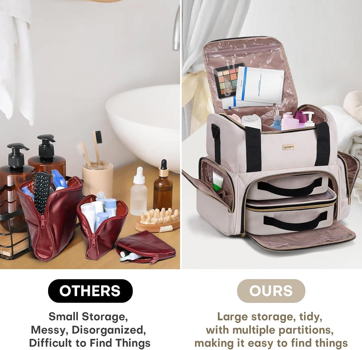 Large Makeup Cosmetic Bag with 2 Removable Case, Double Layer Travel Makeup Organizer Case, travel Toiletry Bag For Women