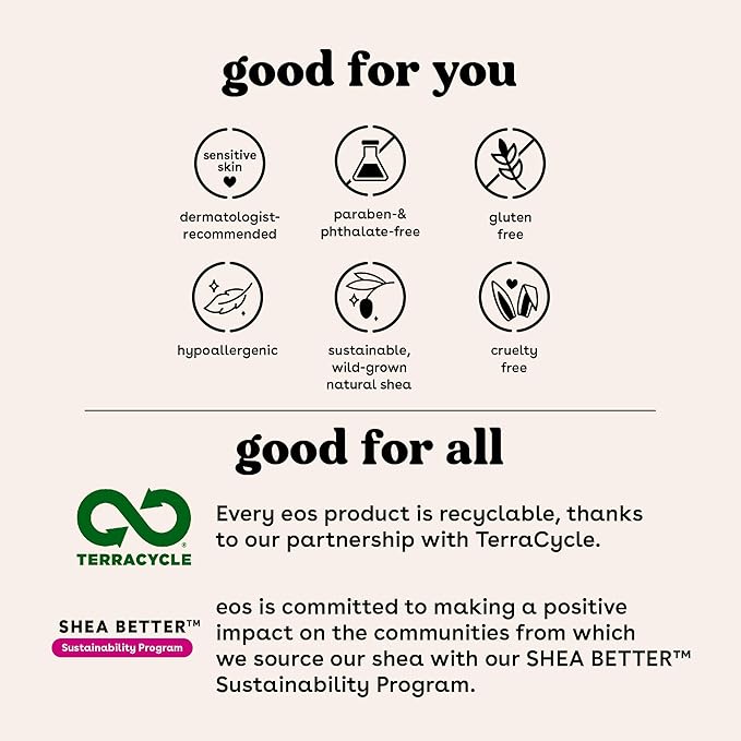 - SUSTAINABLY-SOURCED INGREDIENTS: eos lip balms have wild grown, sustainably sourced, natural shea butter and oil to leave your lips smooth and nourished