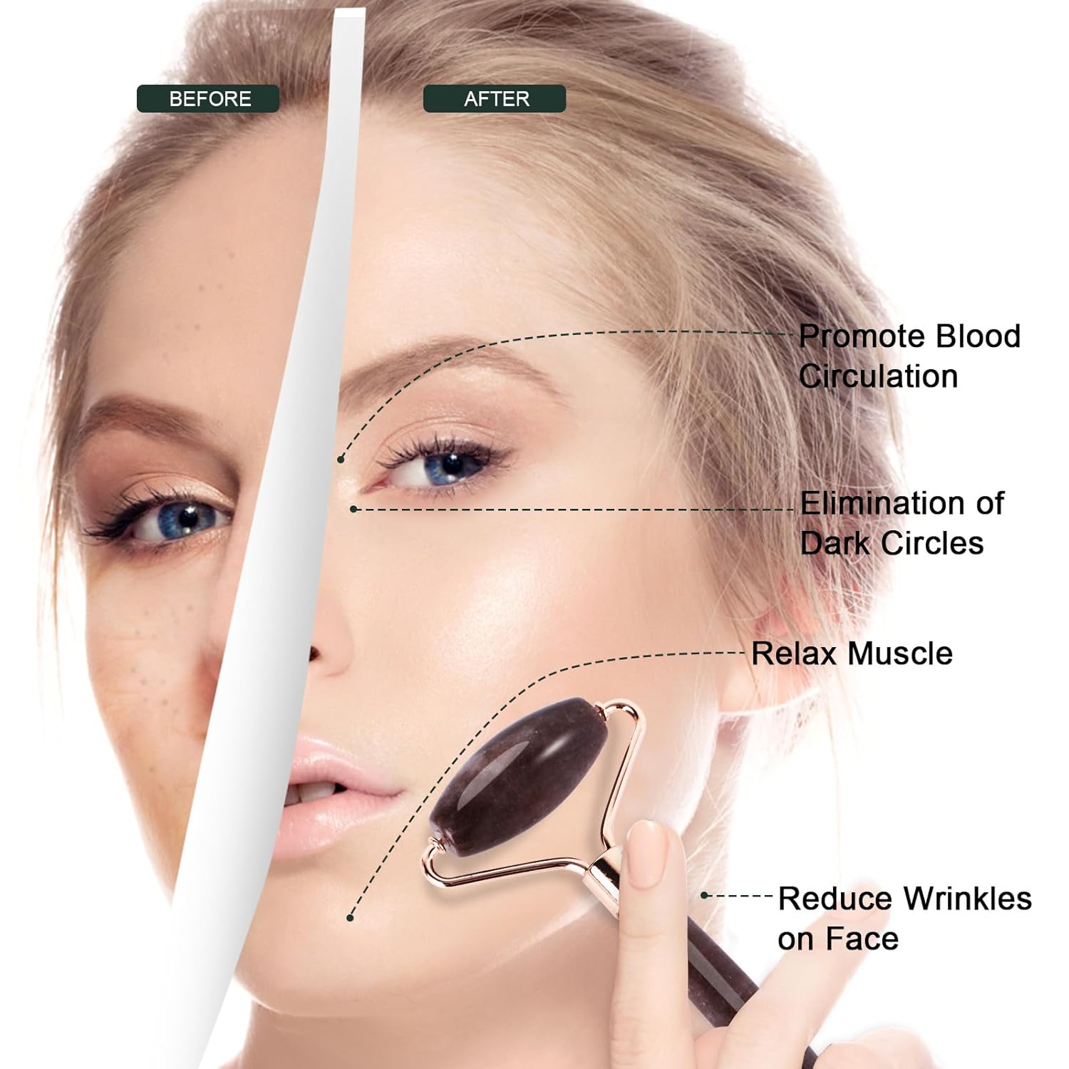 - 【Healthy Facial Tool】Use jade roller for face can decrease puffiness, give you a refreshed, keep you healthy.