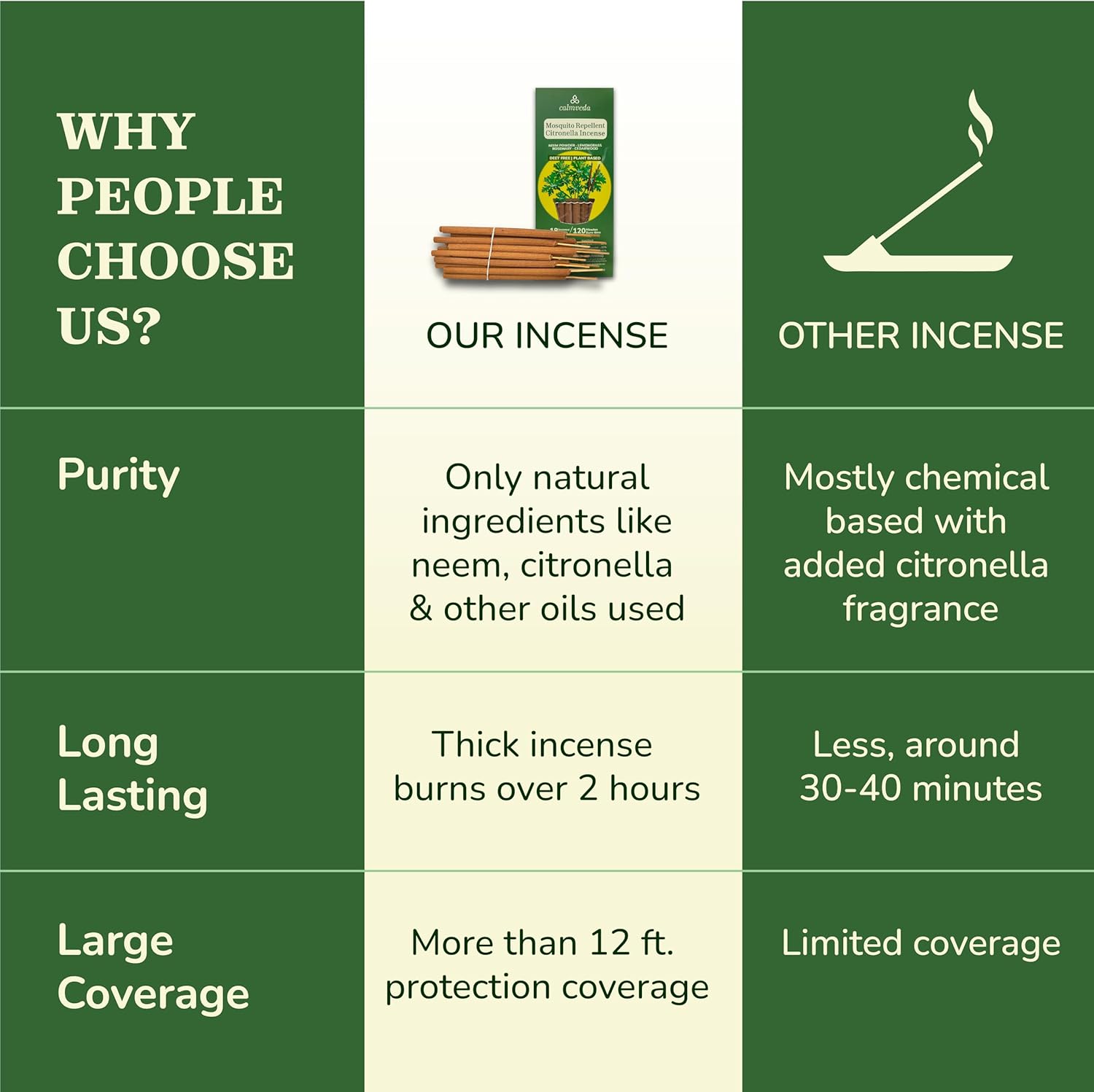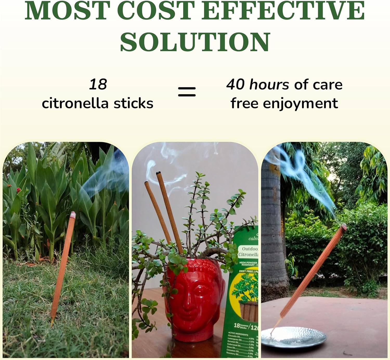 Natural Citronella Incense Sticks Outdoor - (18 Sticks, 40 hrs Protection) for Safety on Patio, Camping etc | DEET Free, Powered with Indian Neem & Essential Oils