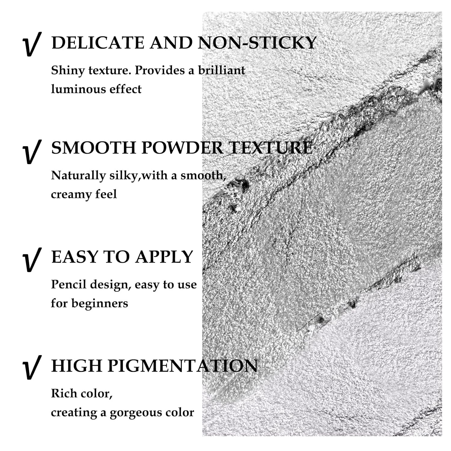 - Eye Highlighter Stick: Glitter Eyeshadow Pen has a shimmer color. You can easily apply a gradient look with it. Multiple colors for you to choose from to create different eye makeup.