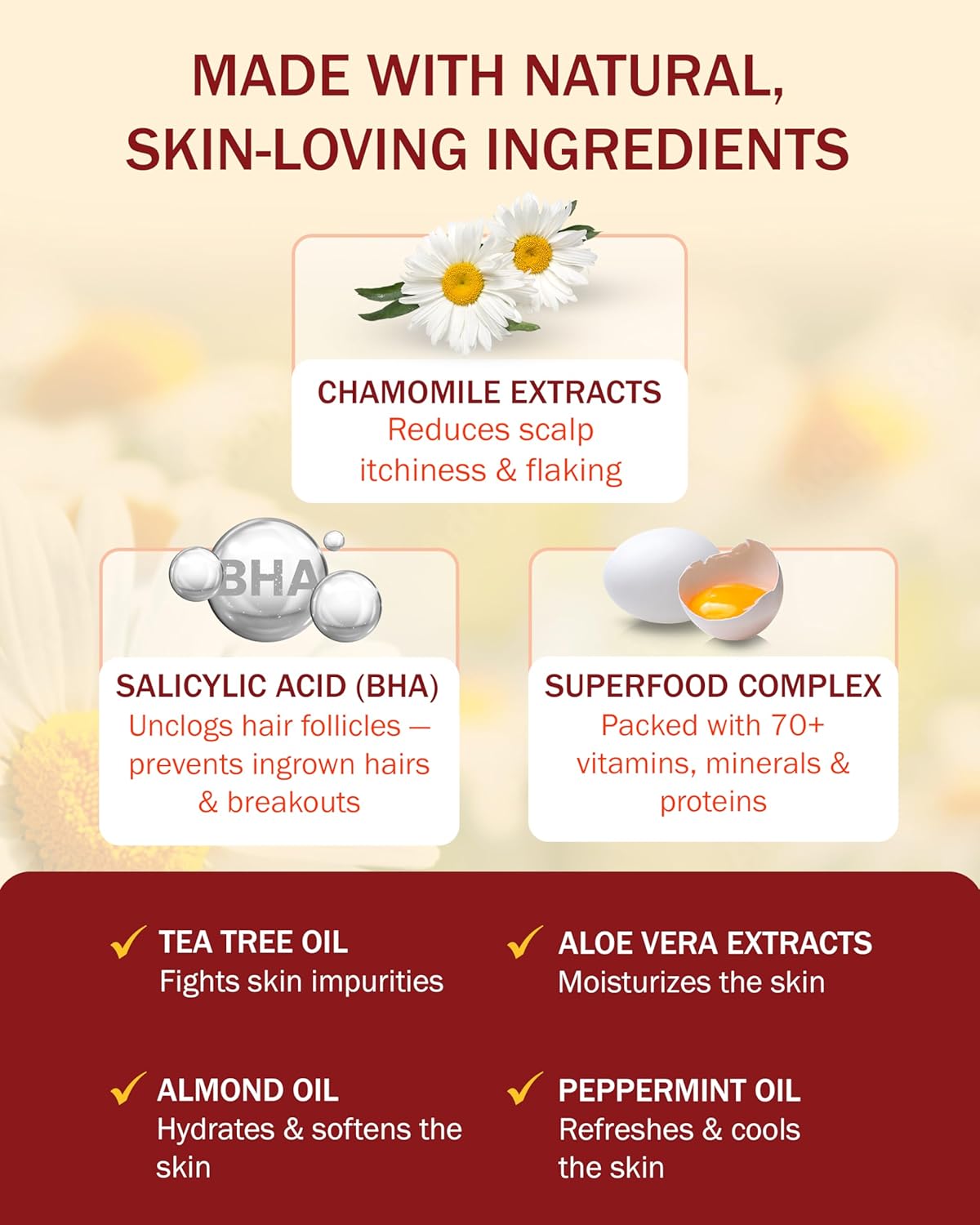 - Potent Natural Ingredients: Formulated with salicylic acid, chamomile extract, and tea tree oil, and infused with a skin-loving superfood complex, aloe vera, and peppermint oil, this itchy scalp shampoo and hair serum for women and men support optimal scalp and hair care.