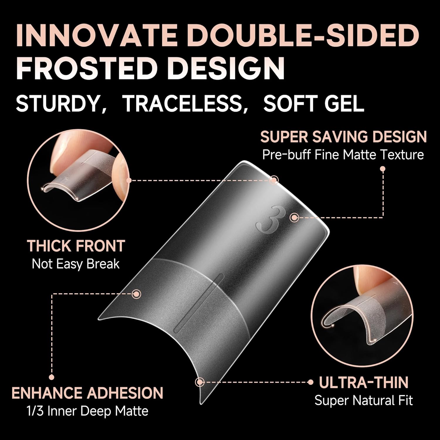 - 💖NEWLY DOUBLE SIDE MATTE TEXTURE-Our medium square gel nail tips upgraded double-sided frosted design. The surface pre-buff with fine matte for applying base coat gives a glossy look. And 1/3 inner pre-buff with deep matte for better adhesive nails. "Thick Front, Ultra-thin Back" design benefit of break-resistant and ultra fit. Let you enjoy this unprecedented professional nail salon enjoyment!