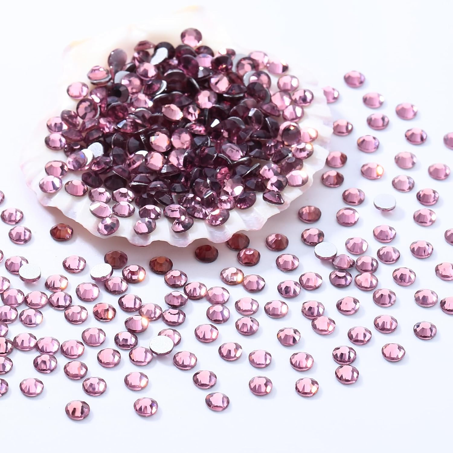 Light Amethyst Flatback Rhinestones, Glass Rhinestones for Nail Art and Craft, Glue Fix, Loose Crystal Gemstones(Lt.Amethyst, SS10, 1440pcs, 2.7-2.8mm)