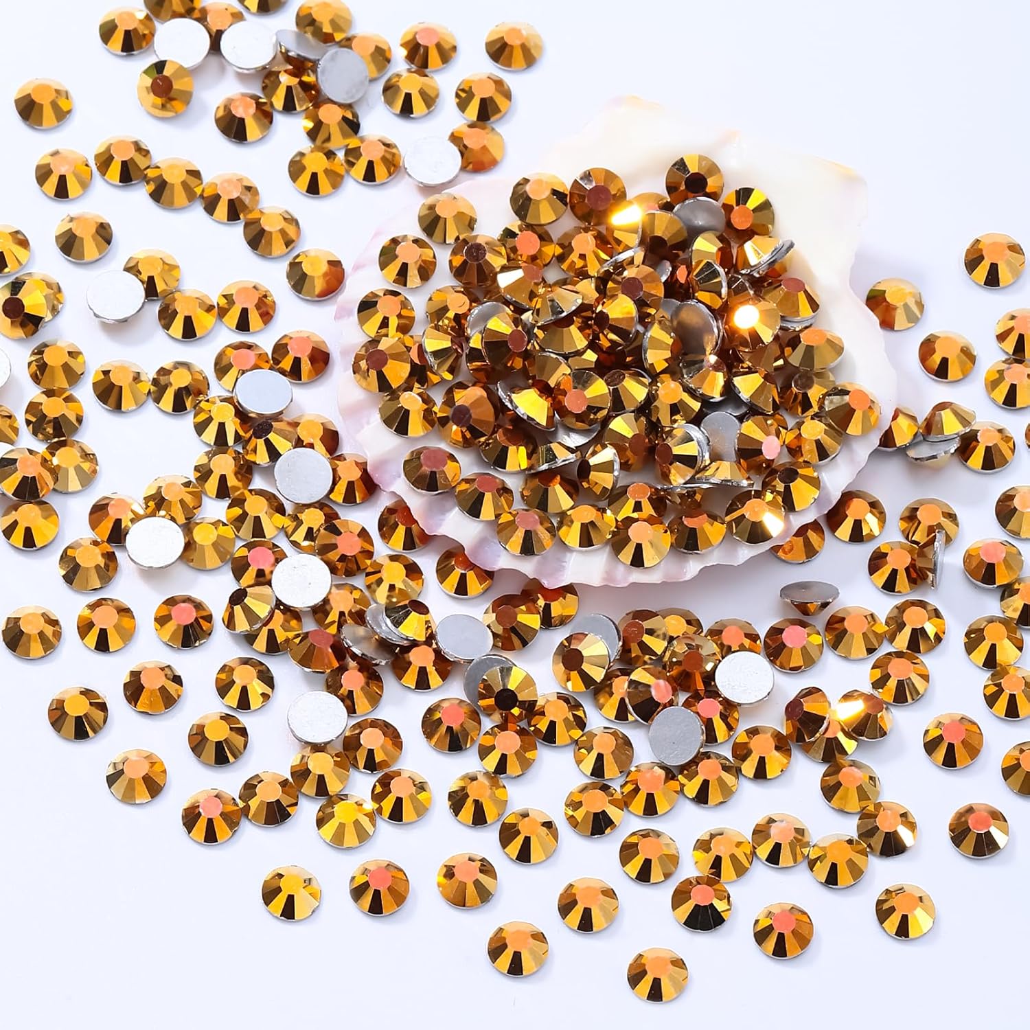 Gold Flatback Rhinestones, Glass Rhinestones for Nail Art and Craft, Glue Fix, Loose Crystal Gemstones(Gold, SS12, 1440pcs, 2.9-3.0mm)
