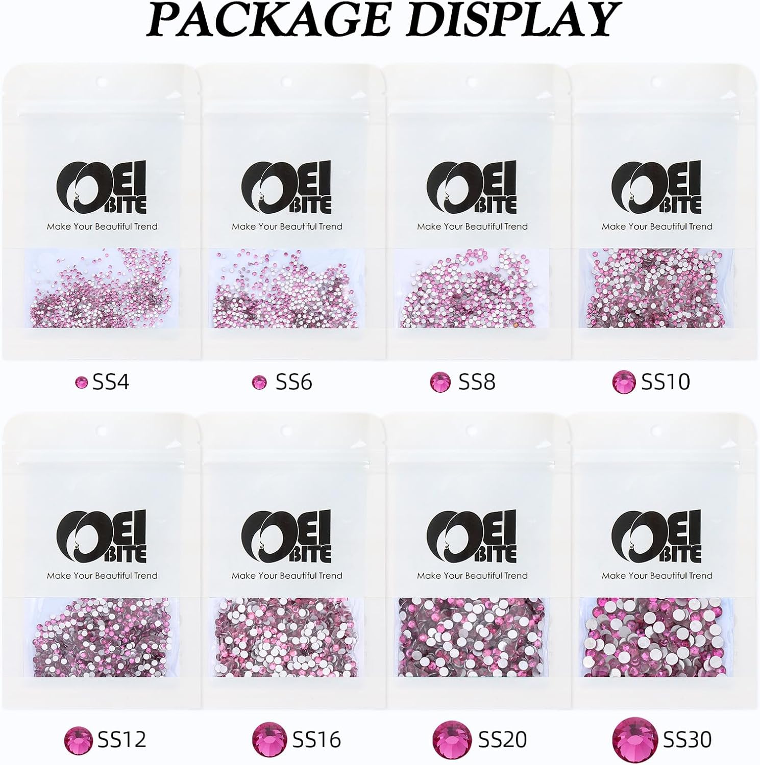 - Product Packaging: Bags packaging SS8 2.3~2.5 MM - 1440 Pcs fuchsia flatback rhinestones