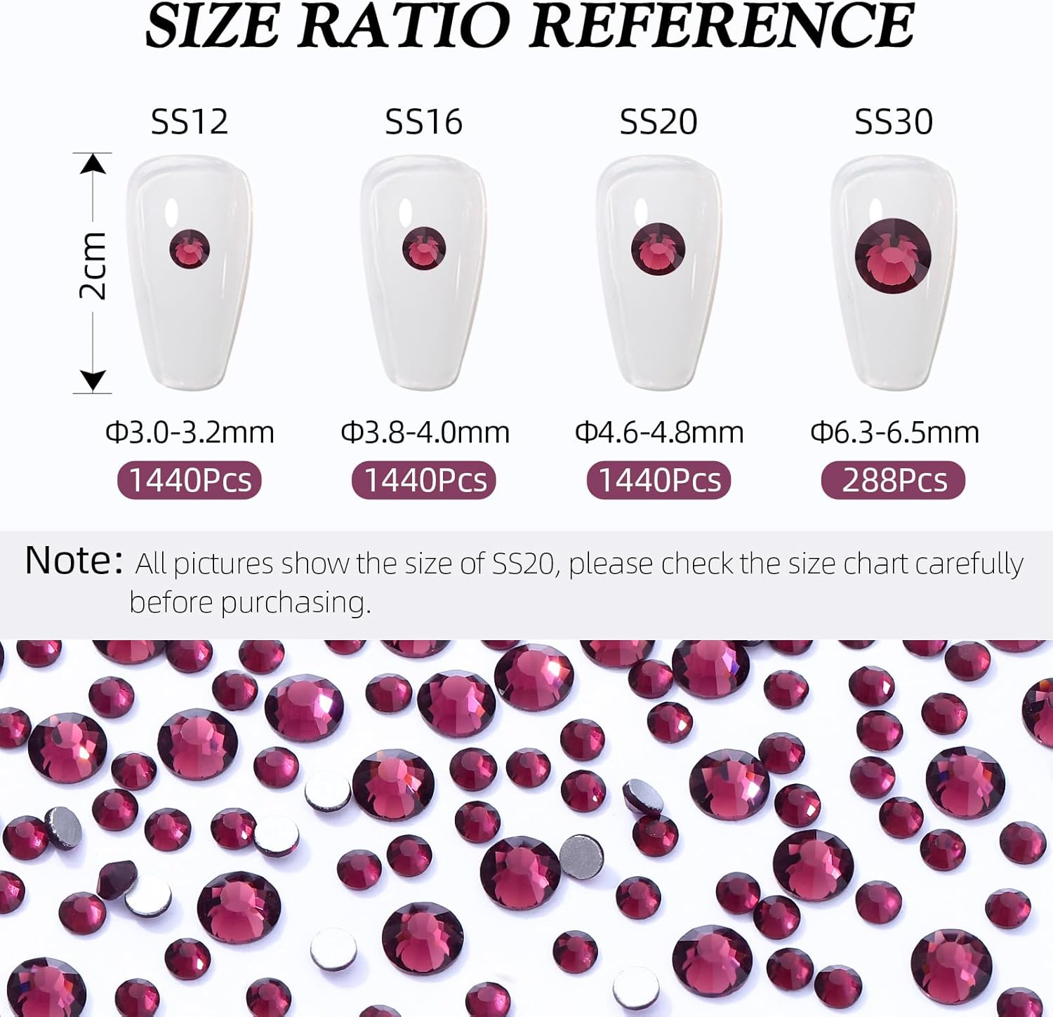Purple Flatback Rhinestones, Glass Rhinestones for Nail Art and Craft, Glue Fix, Loose Crystal Gemstones(Purple, SS16, 1440pcs, 3.8-4.0mm)