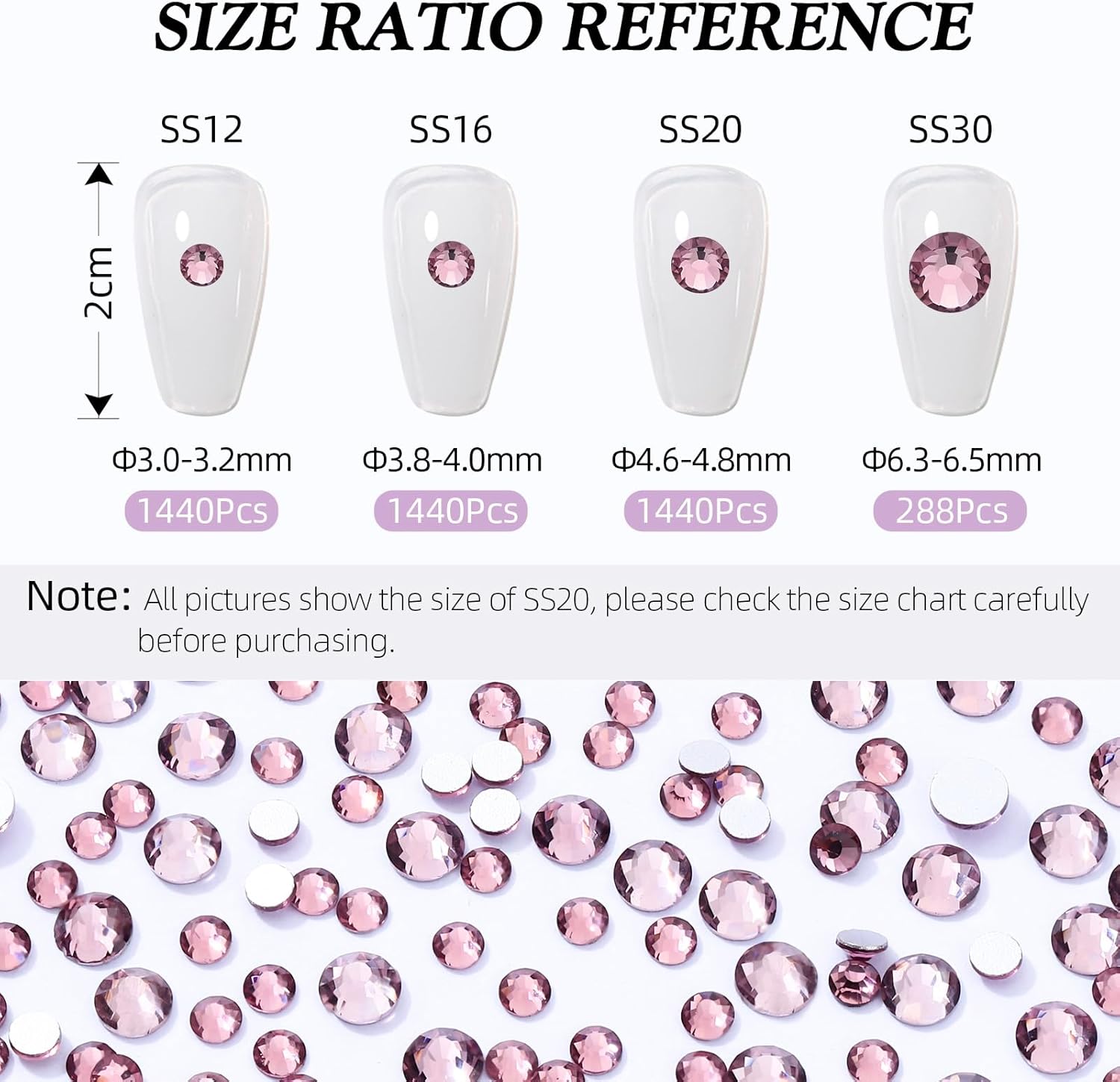 Light Amethyst Flatback Rhinestones, Glass Rhinestones for Nail Art and Craft, Glue Fix, Loose Crystal Gemstones(Lt.Amethyst, SS30, 288pcs, 6.4-6.6mm)