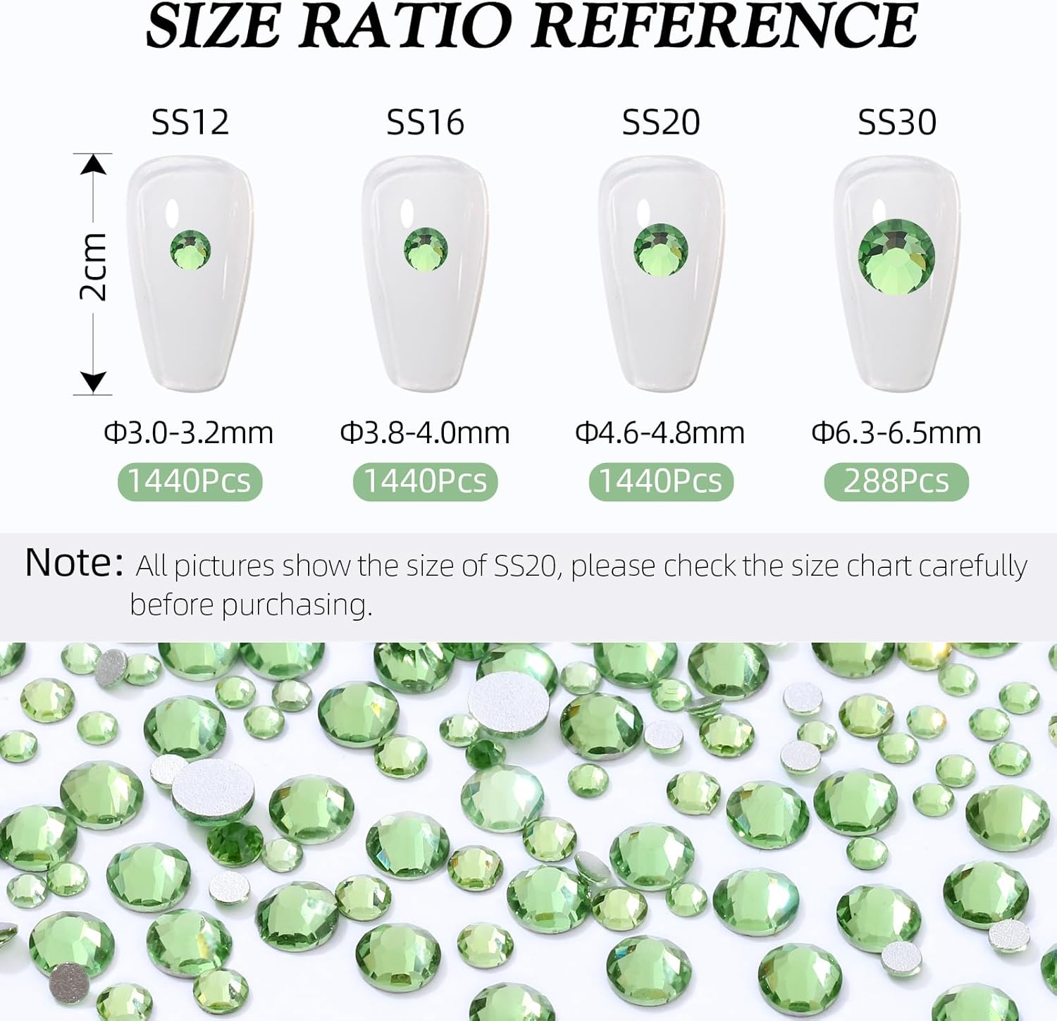 Light Green Flatback Rhinestones, Glass Rhinestones for Nail Art and Craft, Glue Fix, Loose Crystal Gemstones(Lt.Green, SS20, 1440pcs, 4.6-4.8mm)