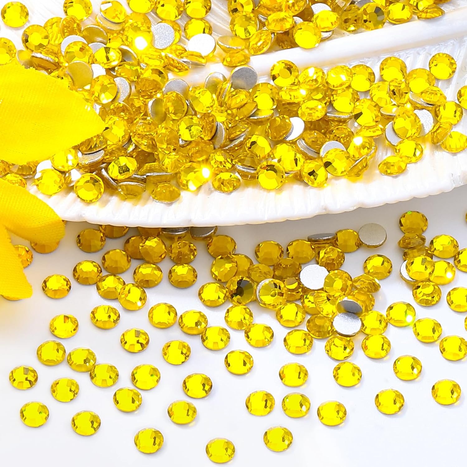 Citrine Flatback Rhinestones, Glass Rhinestones for Nail Art and Craft, Glue Fix, Loose Crystal Gemstones(Yellow, SS4, 1440pcs, 1.5-1.7mm)
