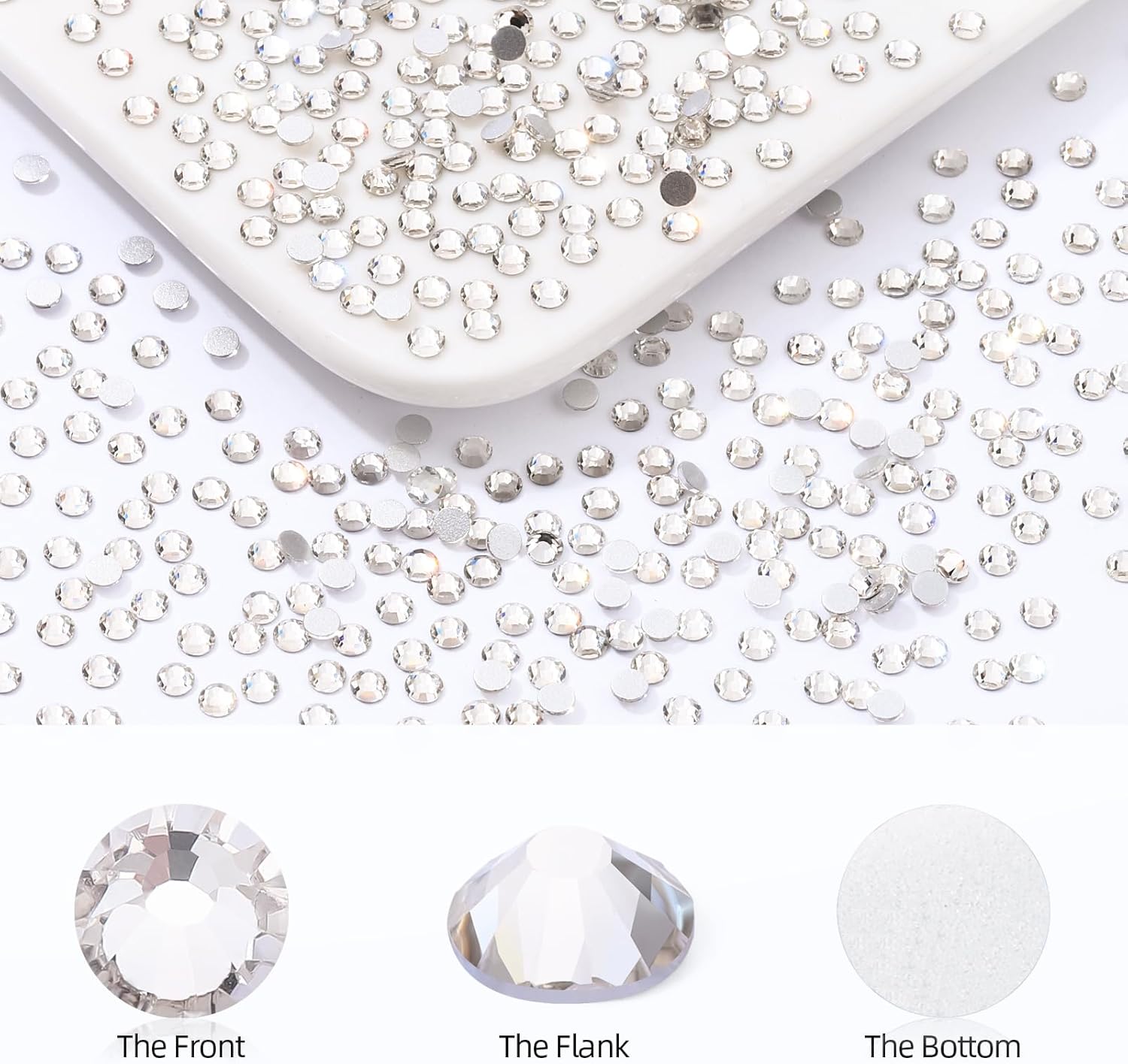 Crystal Clear Flatback Rhinestones, Glass Rhinestones for Nail Art and Craft, Glue Fix, Loose Crystal Gemstones(Crystal, SS6, 1440pcs, 1.9-2.0mm)