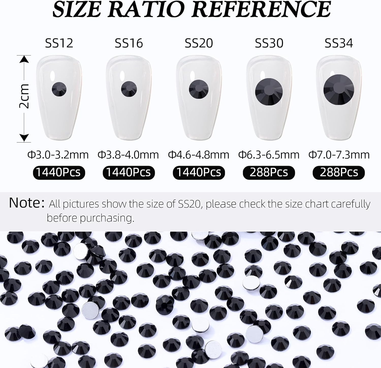 Black Flatback Rhinestones, Glass Rhinestones for Nail Art and Craft, Glue Fix, Loose Crystal Gemstones(Black, SS30, 288pcs, 6.4-6.6mm)