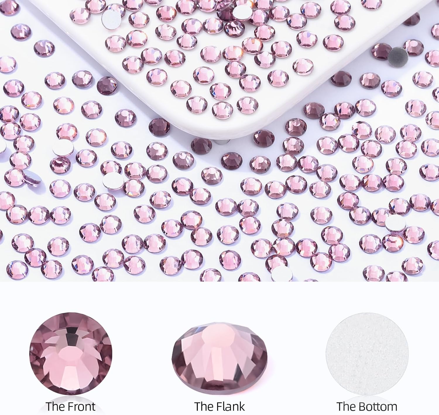 Light Amethyst Flatback Rhinestones, Glass Rhinestones for Nail Art and Craft, Glue Fix, Loose Crystal Gemstones(Lt.Amethyst, SS16, 1440pcs, 3.8-4.0mm)