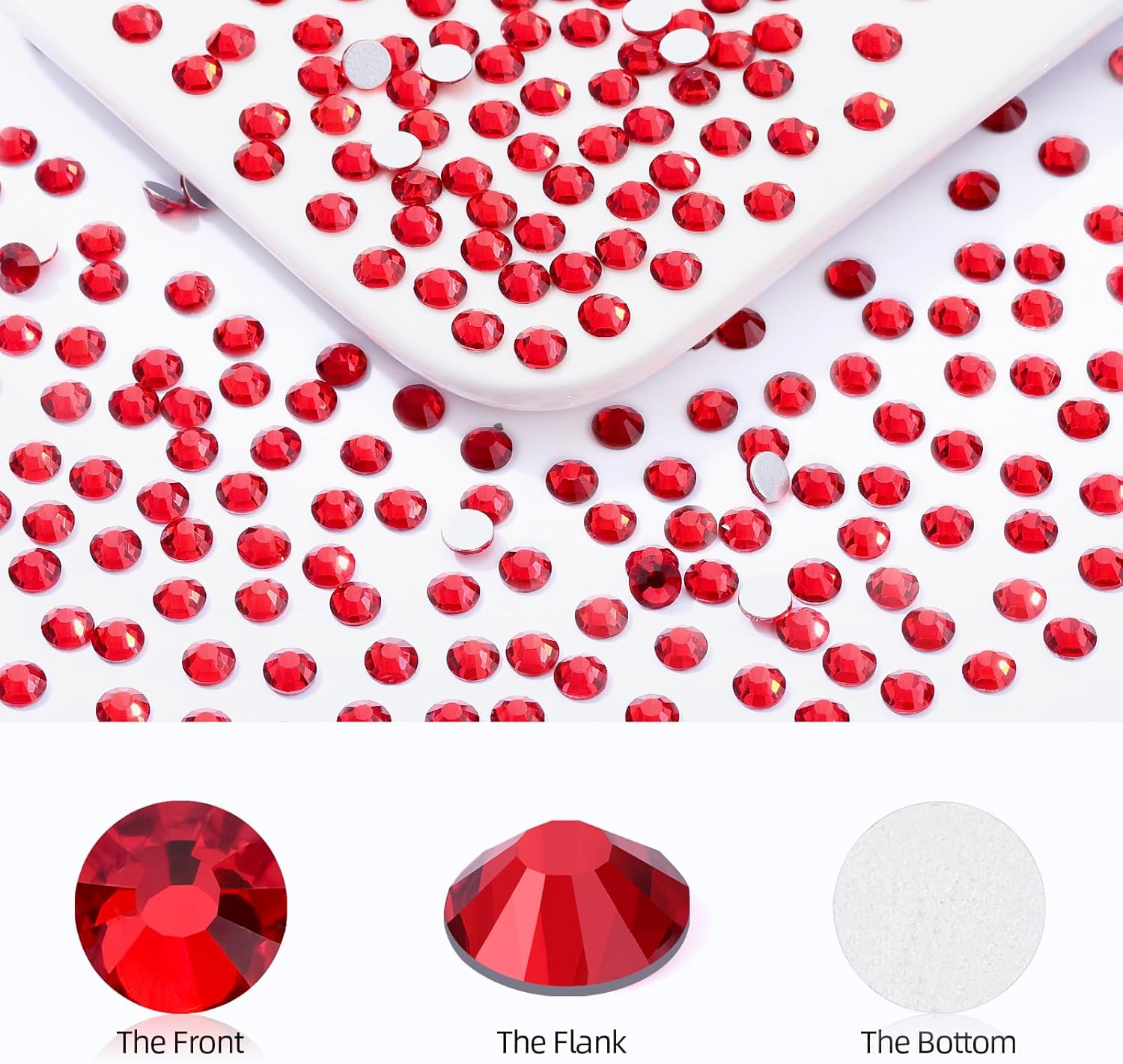 Light Siam Flatback Rhinestones, Glass Rhinestones for Nail Art and Craft, Glue Fix, Loose Crystal Gemstones(Red, SS30, 288pcs, 6.4-6.6mm)