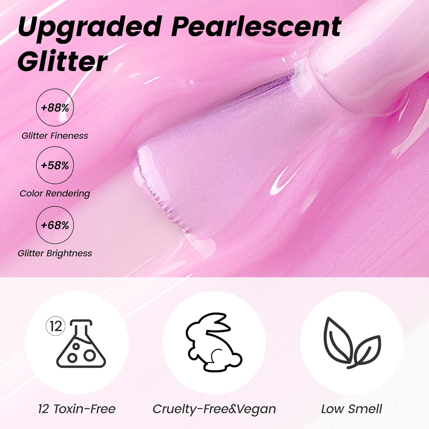YTD Likomey Gel Nail Polish,15ml Pearlescent Light Pink Glitter Nails Gel,Fall Winter Pastel Pink Shimmer Shiny Sparkly Salon Home DIY Manicure UV Color Varnish,SF408