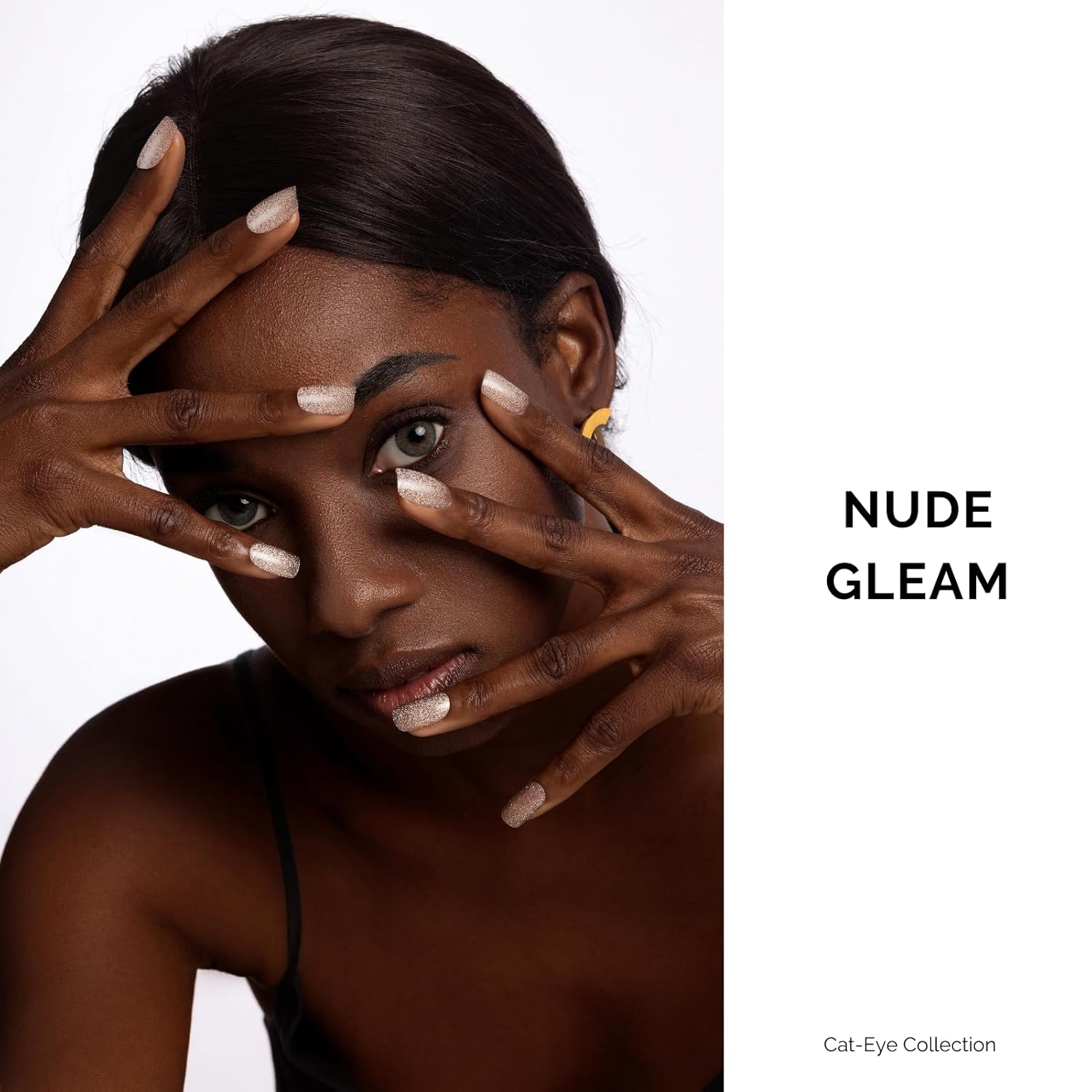 NAILOG Semi Cured Gel Nail Strips - 34 pcs | Buy 2 Get 1 UV Lamp | Long Lasting Nail Polish Sticker Wraps with Glossy Gel Finish, Nude Gleam