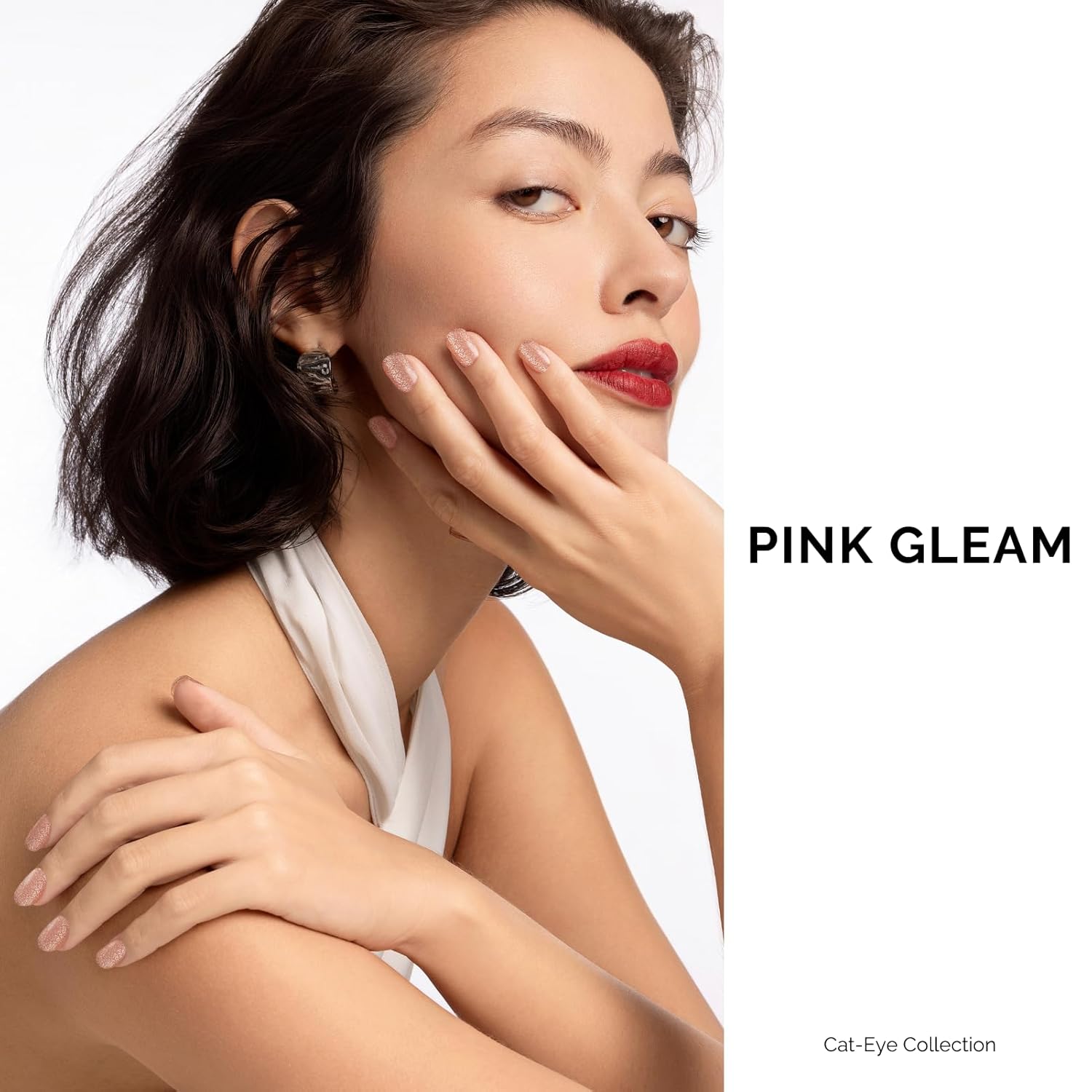 NAILOG Semi Cured Gel Nail Strips - 34 pcs | Buy 2 Get 1 UV Lamp | Long Lasting Nail Polish Sticker Wraps with Glossy Gel Finish, Pink Gleam