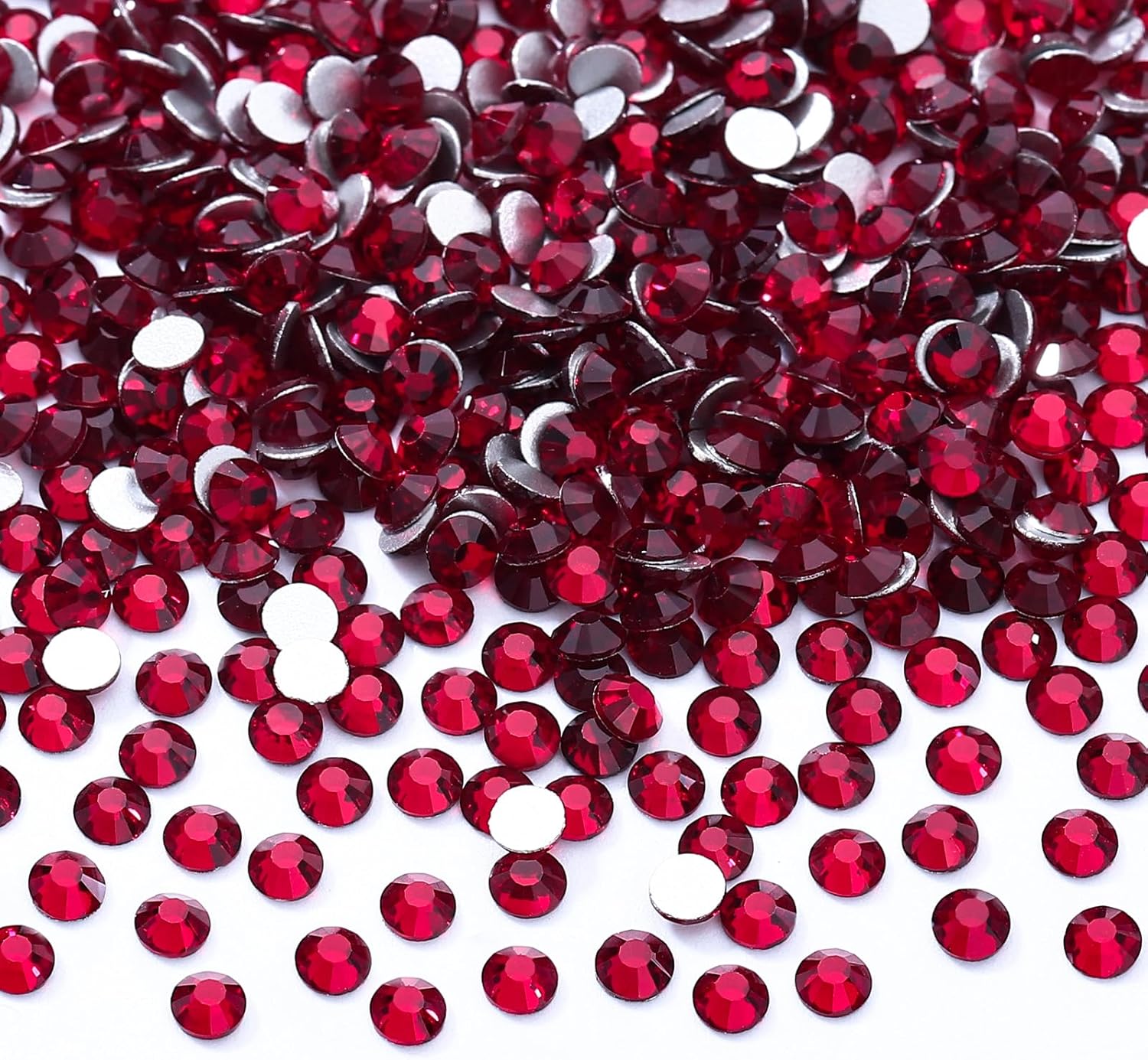 Siam Flatback Rhinestones, Glass Rhinestones for Nail Art and Craft, Glue Fix, Loose Crystal Gemstones(Siam, SS10, 2880pcs, 2.7-2.8mm)