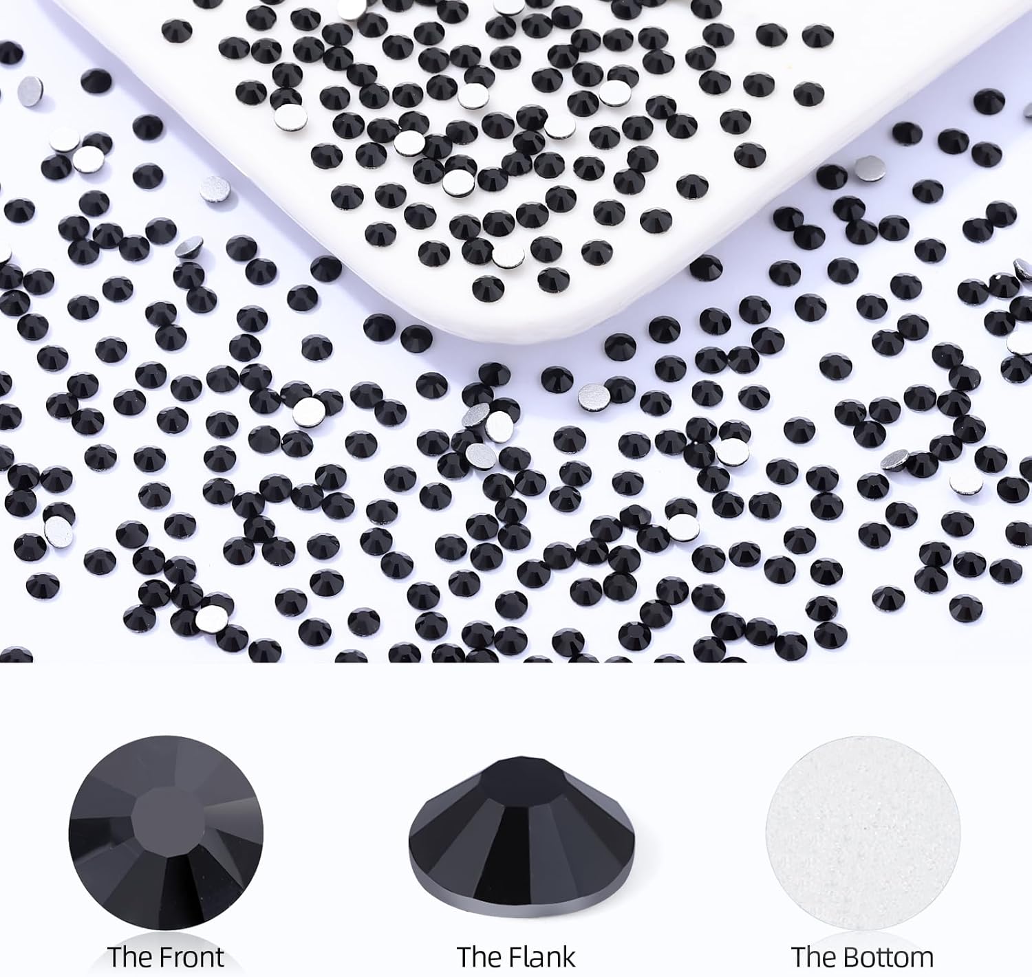 Black Flatback Rhinestones, Glass Rhinestones for Nail Art and Craft, Glue Fix, Loose Crystal Gemstones(Black, SS10, 2880pcs, 2.7-2.8mm)