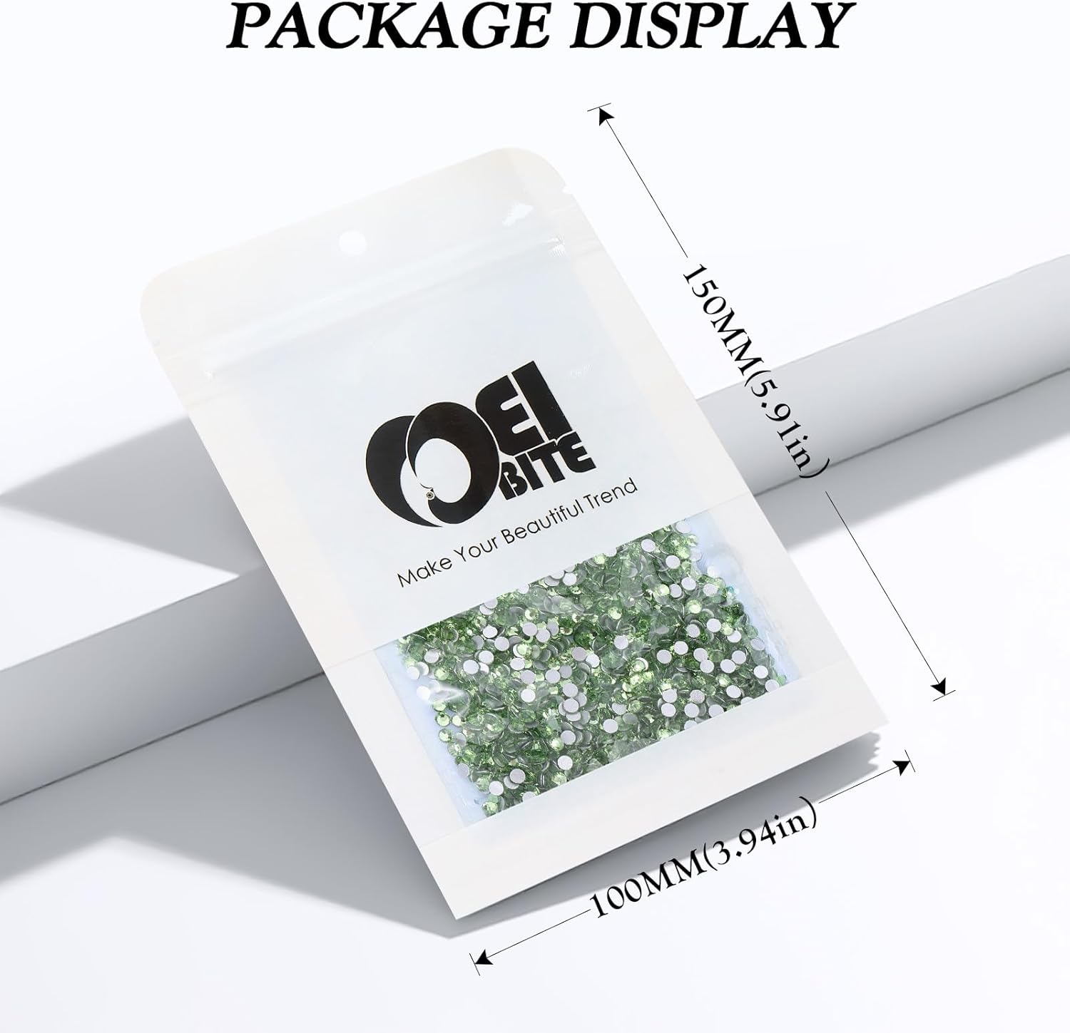 - Product Packaging: Bags packaging SS6 1.9~2.0 MM - 2880 Pcs light green flatback rhinestones.