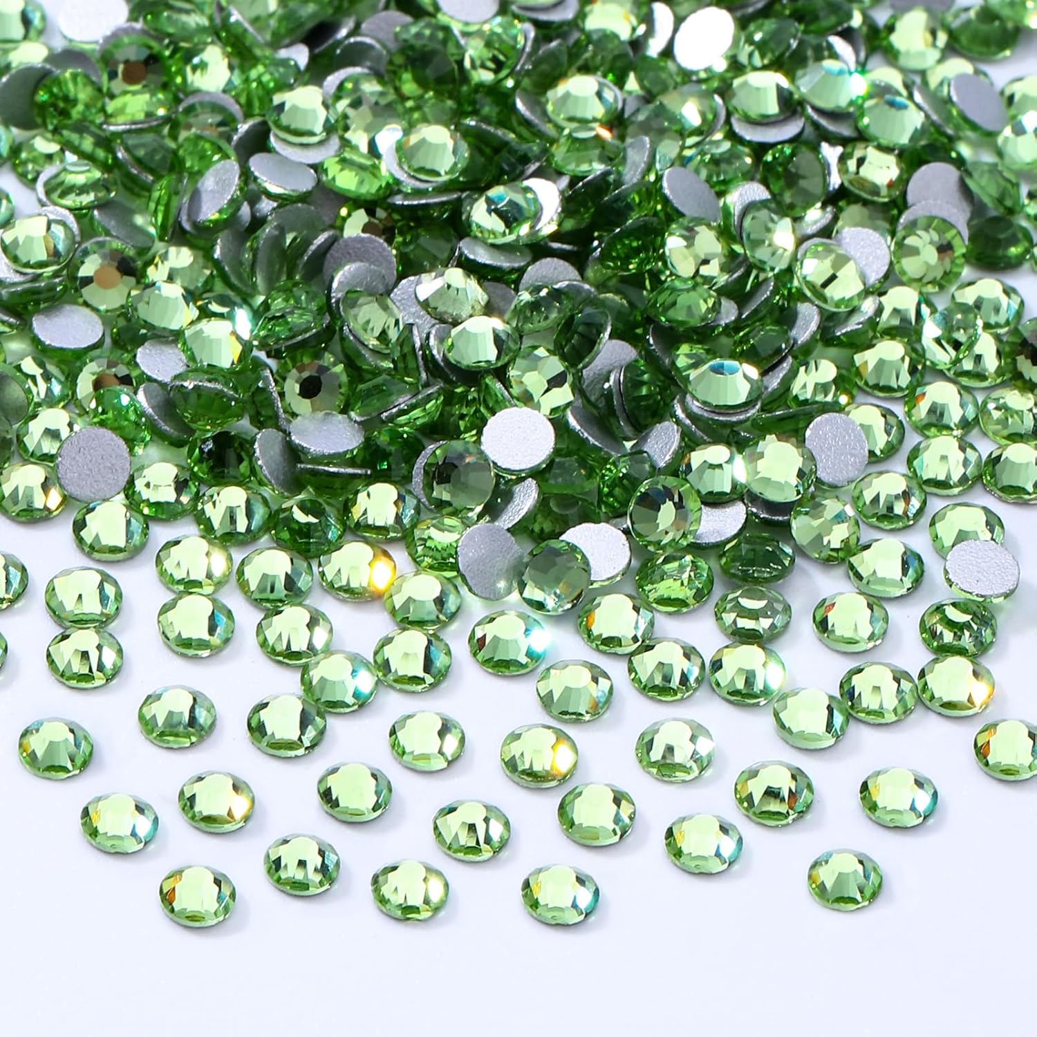 Light Green Flatback Rhinestones, Glass Rhinestones for Nail Art and Craft, Glue Fix, Loose Crystal Gemstones(Lt.Green, SS10, 2880pcs, 2.7-2.8mm)