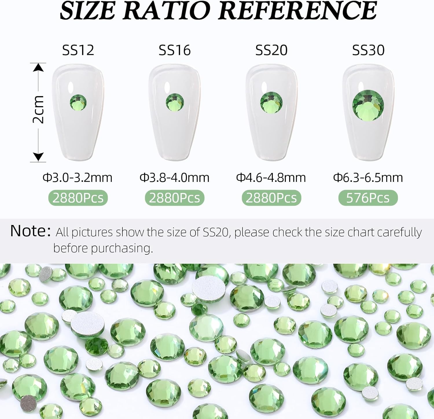 Light Green Flatback Rhinestones, Glass Rhinestones for Nail Art and Craft, Glue Fix, Loose Crystal Gemstones(Lt.Green, SS16, 2880pcs, 3.8-4.0mm)