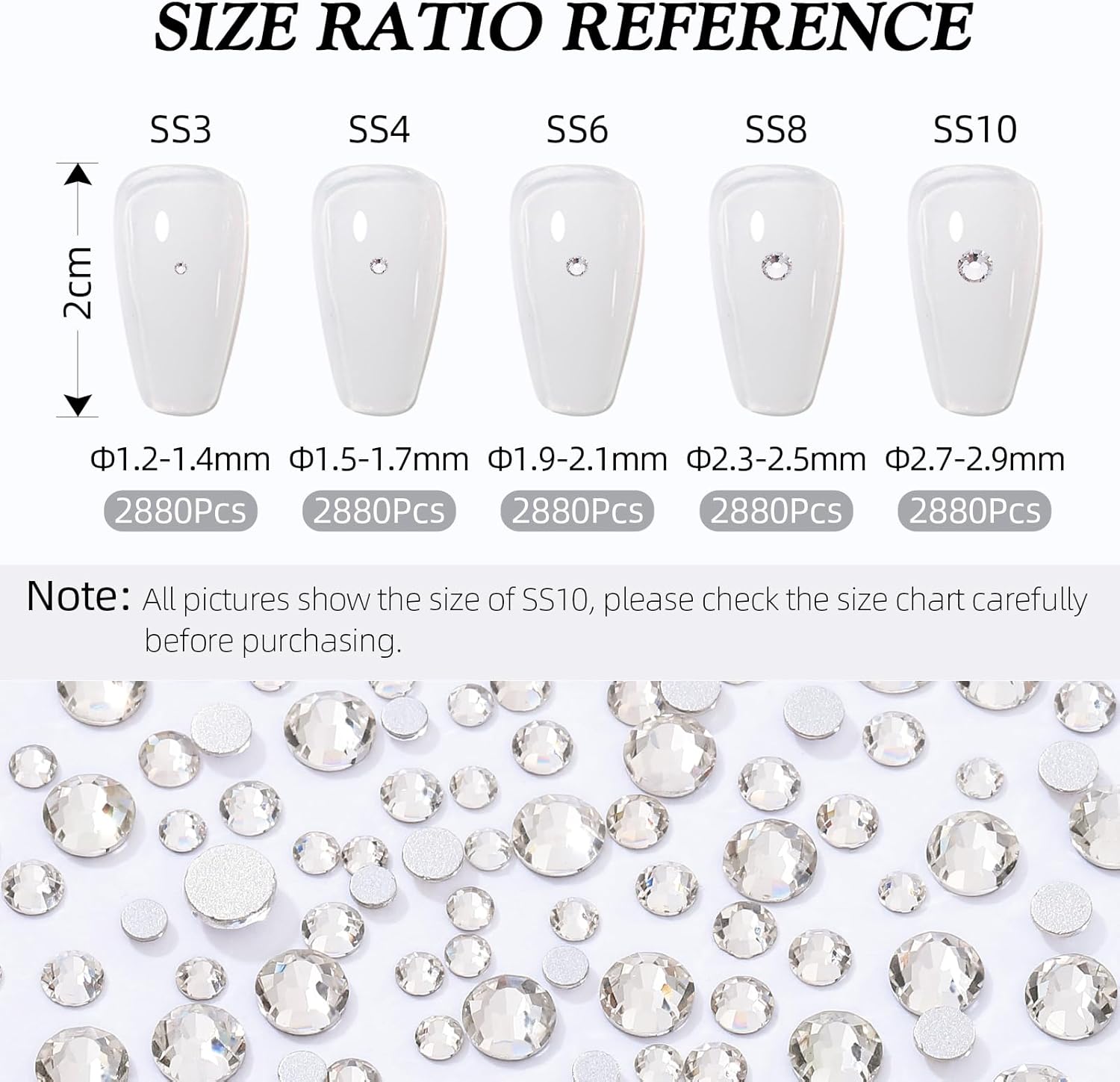 Crystal Clear Flatback Rhinestones, Glass Rhinestones for Nail Art and Craft, Glue Fix, Loose Crystal Gemstones(Crystal, SS4, 2880pcs, 1.5-1.7mm)