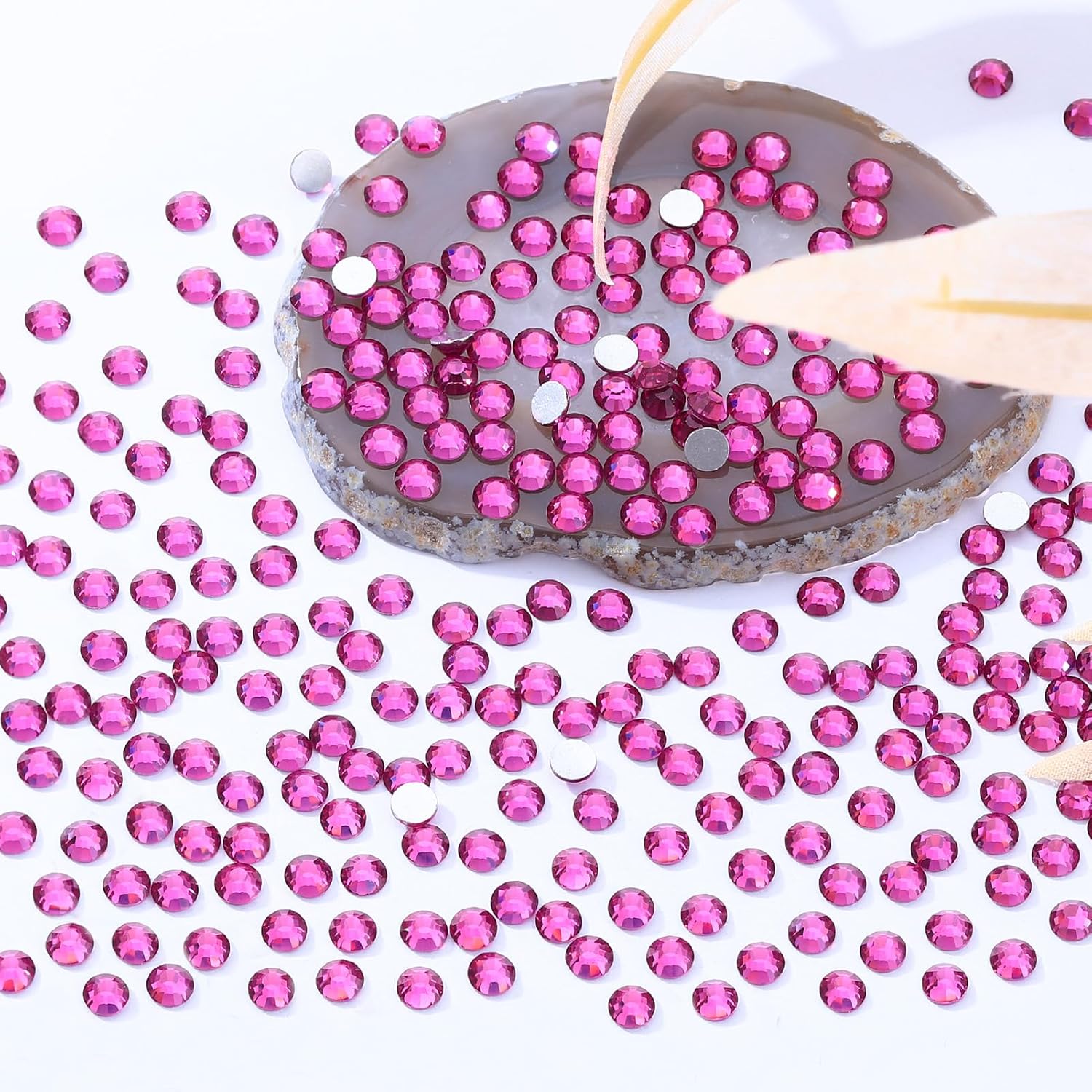 Fuchsia Flatback Rhinestones, Glass Rhinestones for Nail Art and Craft, Glue Fix, Loose Crystal Gemstones(Fuchsia, SS30, 576pcs, 6.4-6.6mm)