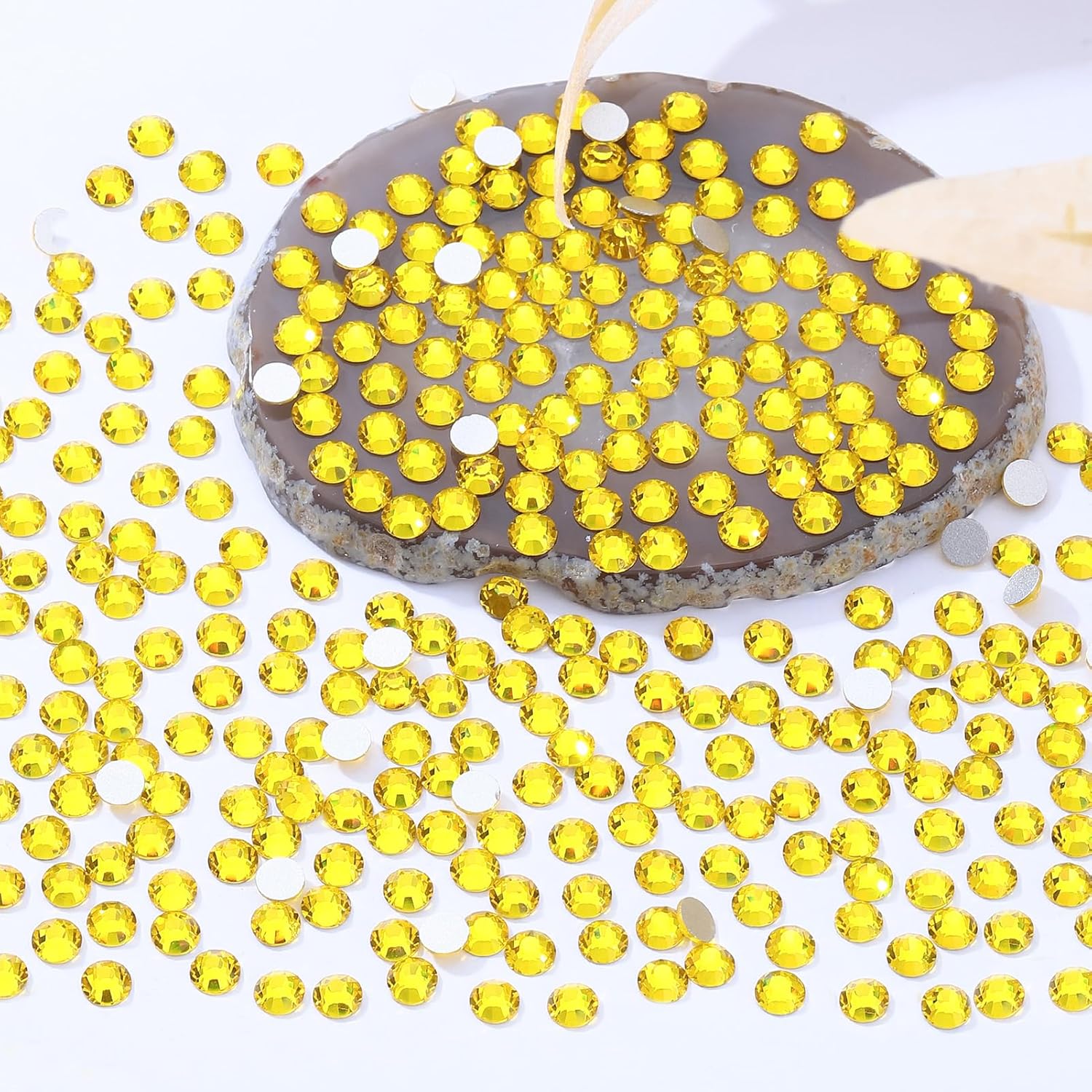 Yellow Flatback Rhinestones, Glass Rhinestones for Nail Art and Craft, Glue Fix, Loose Crystal Gemstones(Yellow, SS30, 576pcs, 6.4-6.6mm)