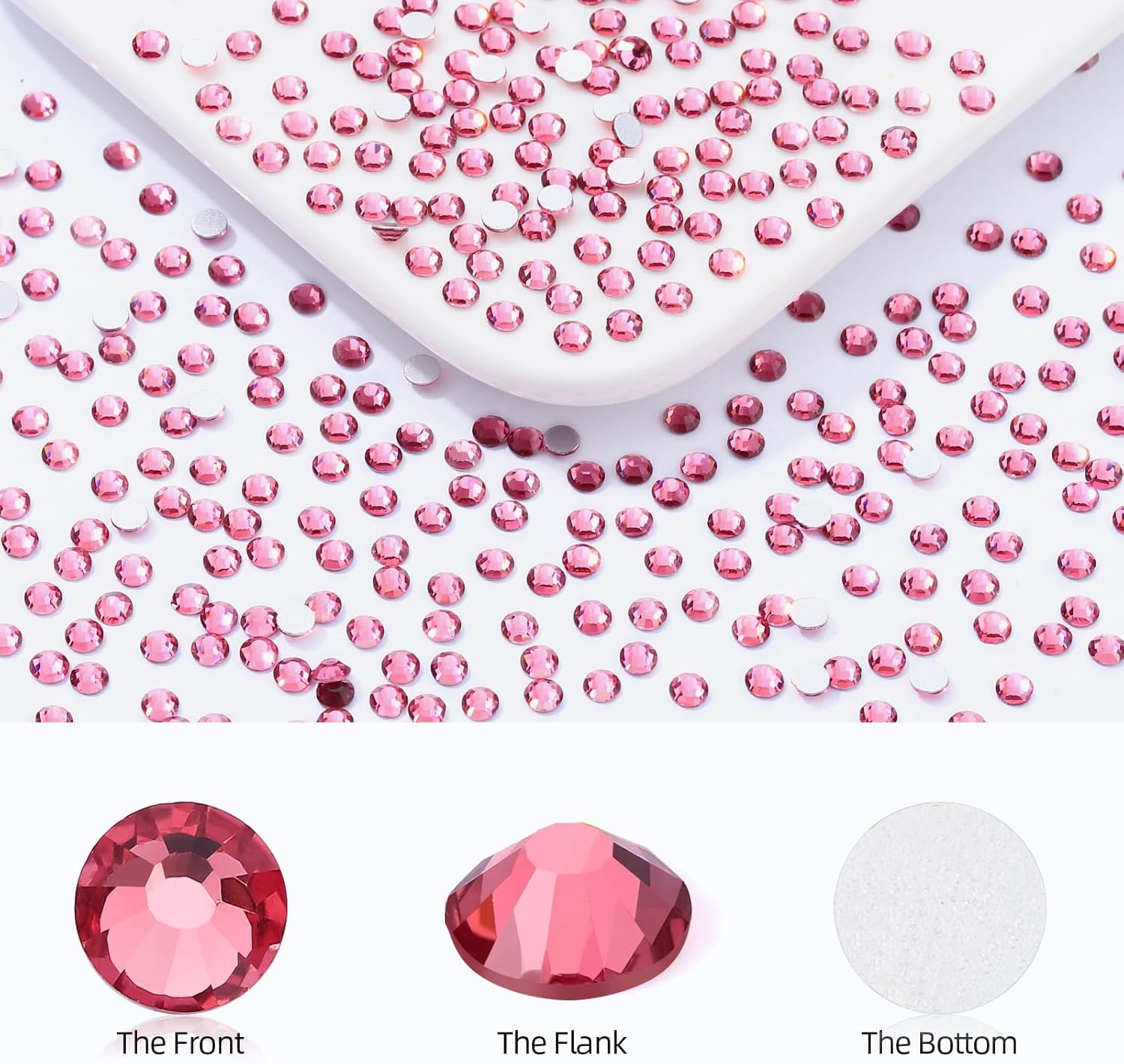 Rose Flatback Rhinestones, Glass Rhinestones for Nail Art and Craft, Glue Fix, Loose Crystal Gemstones(Rose, SS10, 2880pcs, 2.7-2.8mm)