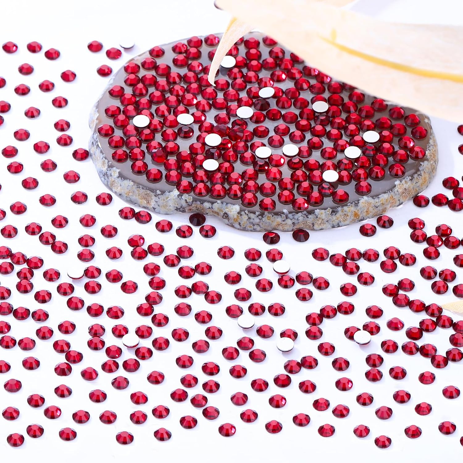 Siam Flatback Rhinestones, Glass Rhinestones for Nail Art and Craft, Glue Fix, Loose Crystal Gemstones(Siam, SS4, 2880pcs, 1.5-1.7mm)
