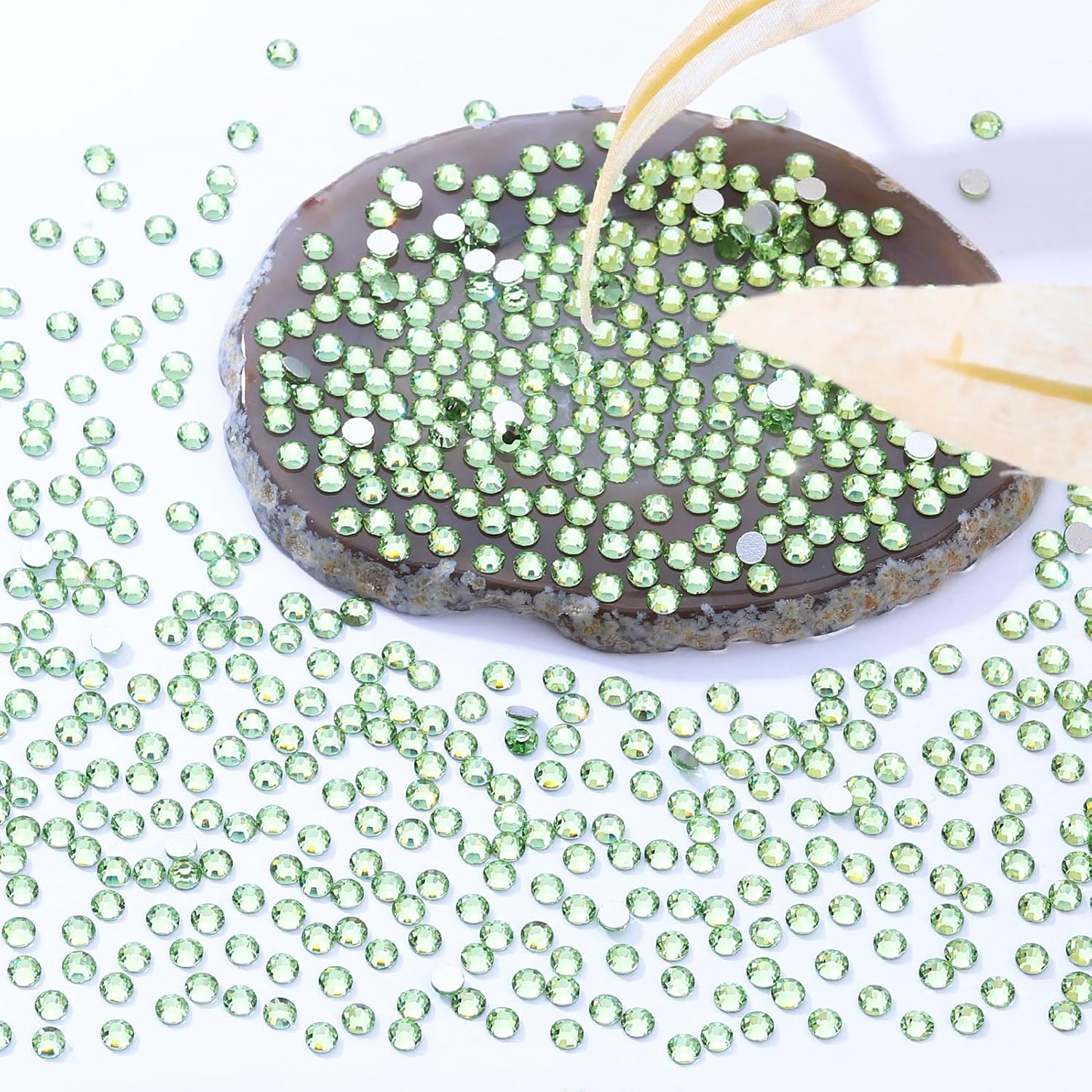 Light Green Flatback Rhinestones, Glass Rhinestones for Nail Art and Craft, Glue Fix, Loose Crystal Gemstones(Lt.Green, SS4, 2880pcs, 1.5-1.7mm)