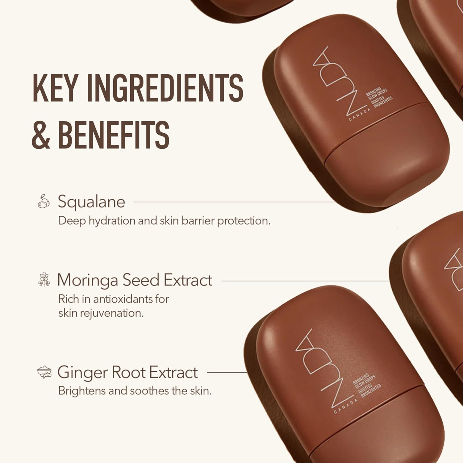 - FACE BRONZING DROPS - Effortlessly achieve a sun-kissed complexion with the NUDA Bronzing Glow Drops! This unique, lightweight formula is designed to help you achieve that “no-makeup makeup” glow with just a few bronzing drops. Wear it on its own, mixed with your foundation, or dabbed onto skin for a dewy, radiant result.
